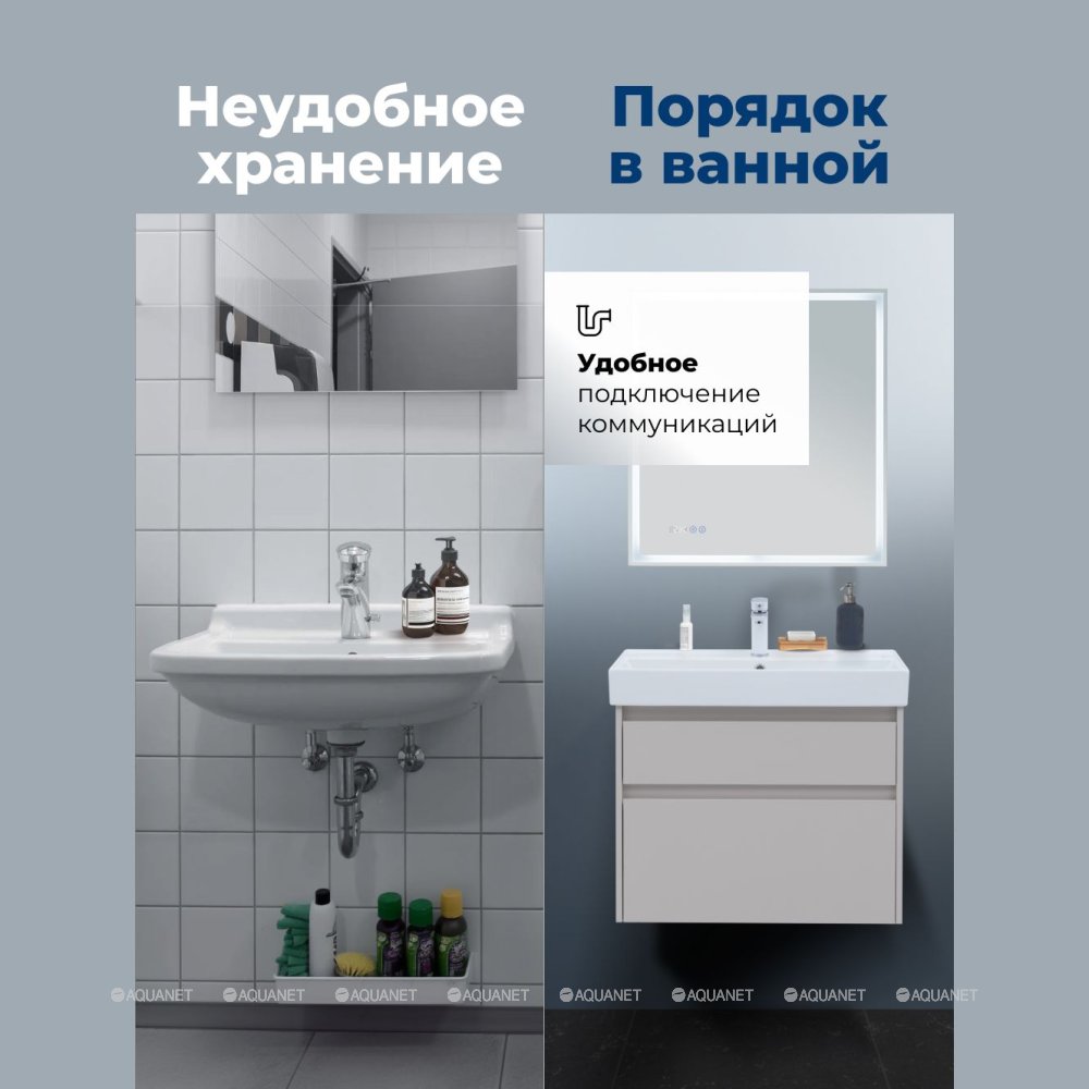 Вместительный нижний ящик – удобное хранение банных принадлежностей.