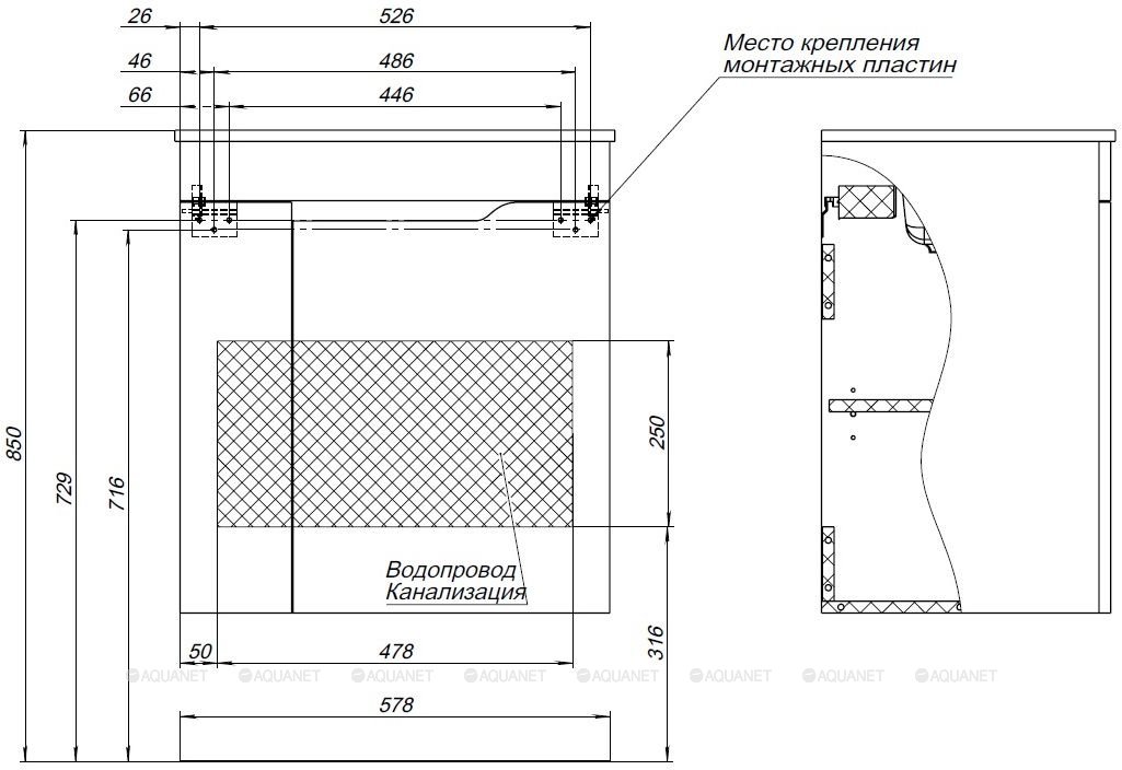 Тумба под раковину подвесная Aquanet Практика 60 см 2 дв маренго 330454