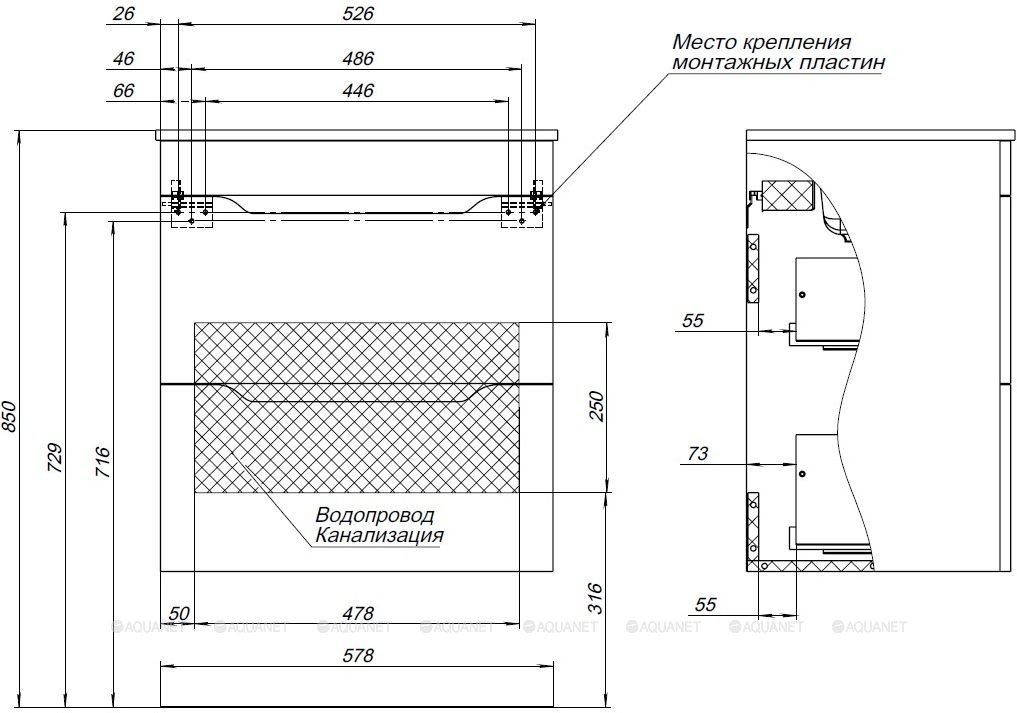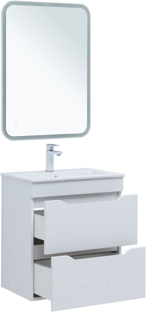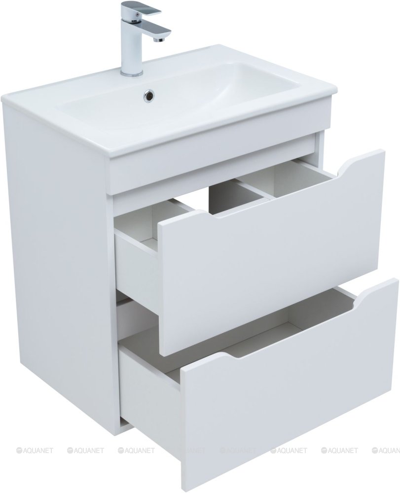 Тумба под раковину подвесная Aquanet Практика 60 см 2 ящ белый матовый 330457
