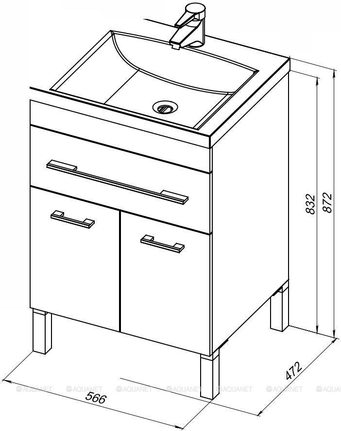 Тумба под раковину подвесная Aquanet Верона 60 см 1ящ+2дв белый 182507