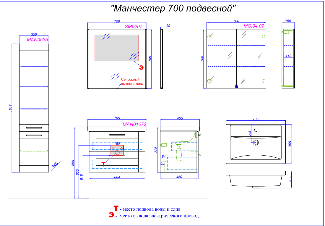 Тумба под раковину подвесная Aqwella Manchester 70 см MAN01072