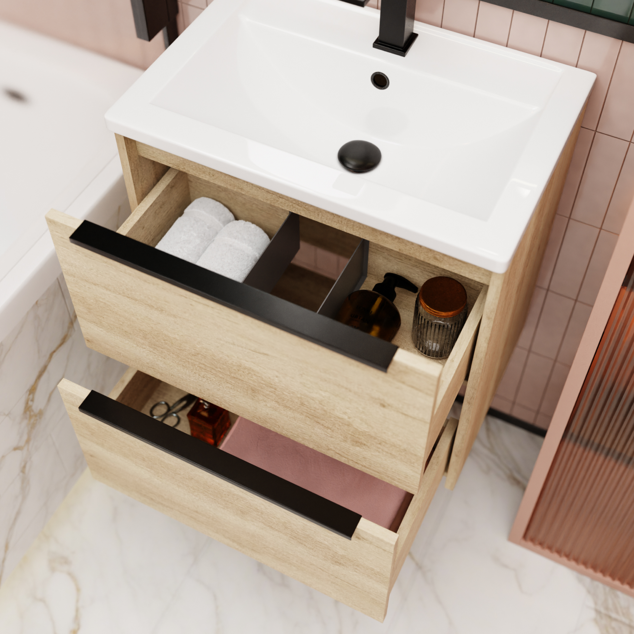 Тумба под раковину подвесная La Fenice Tesoro 60 см натуральный FNC-01-TES-DNN-60-2