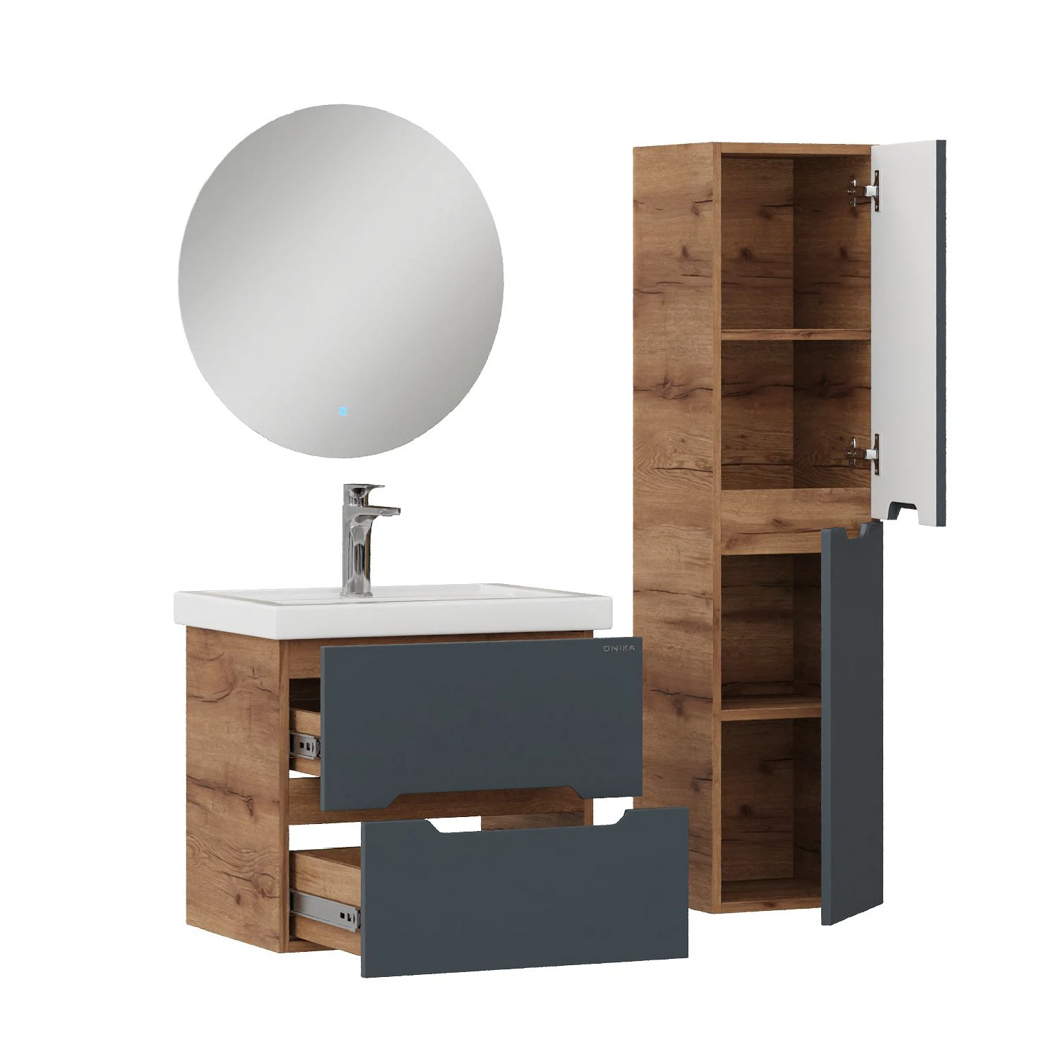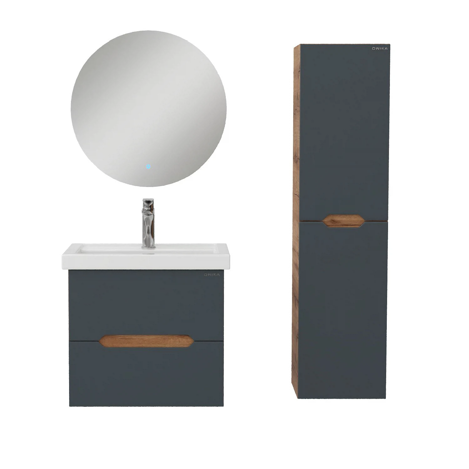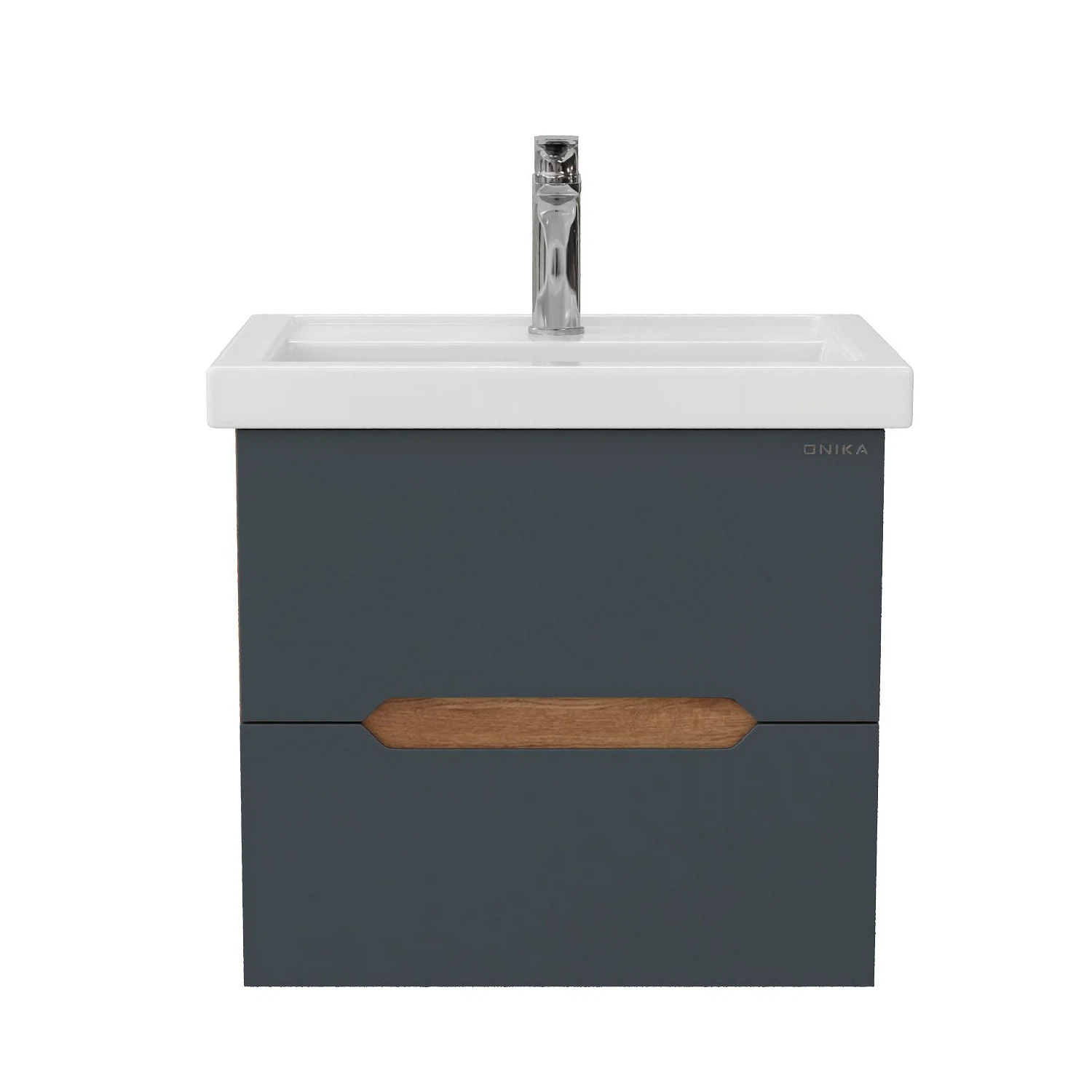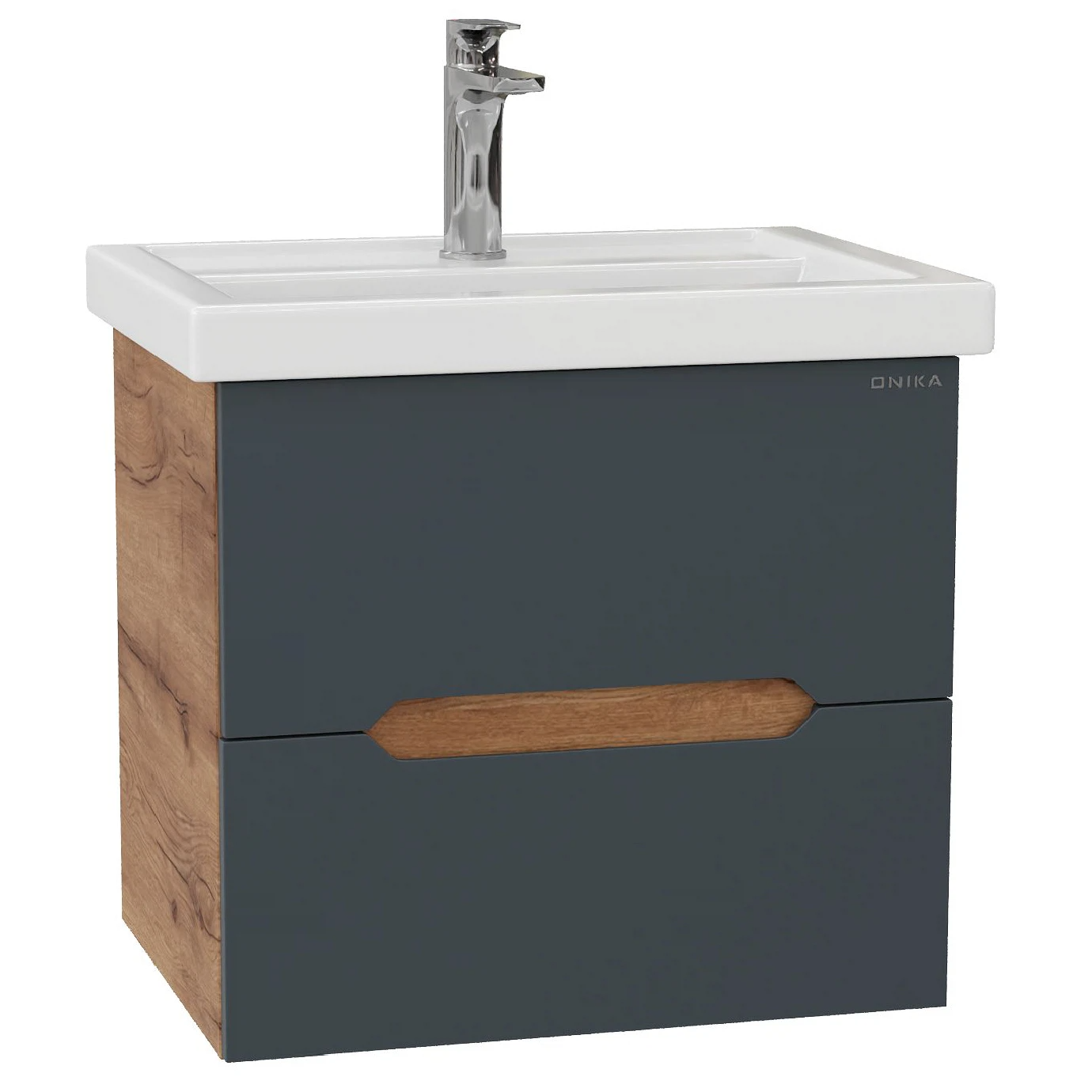 Тумба под раковину подвесная Onika Айленд 60 см (Кirovit Фостер) графит/дуб крафт золотой 106163
