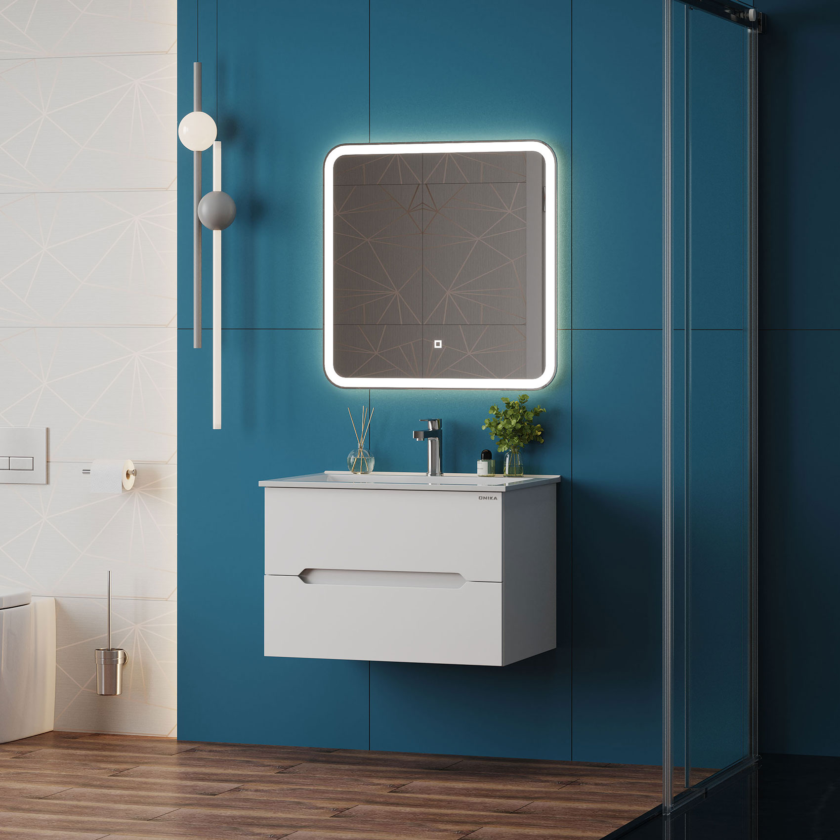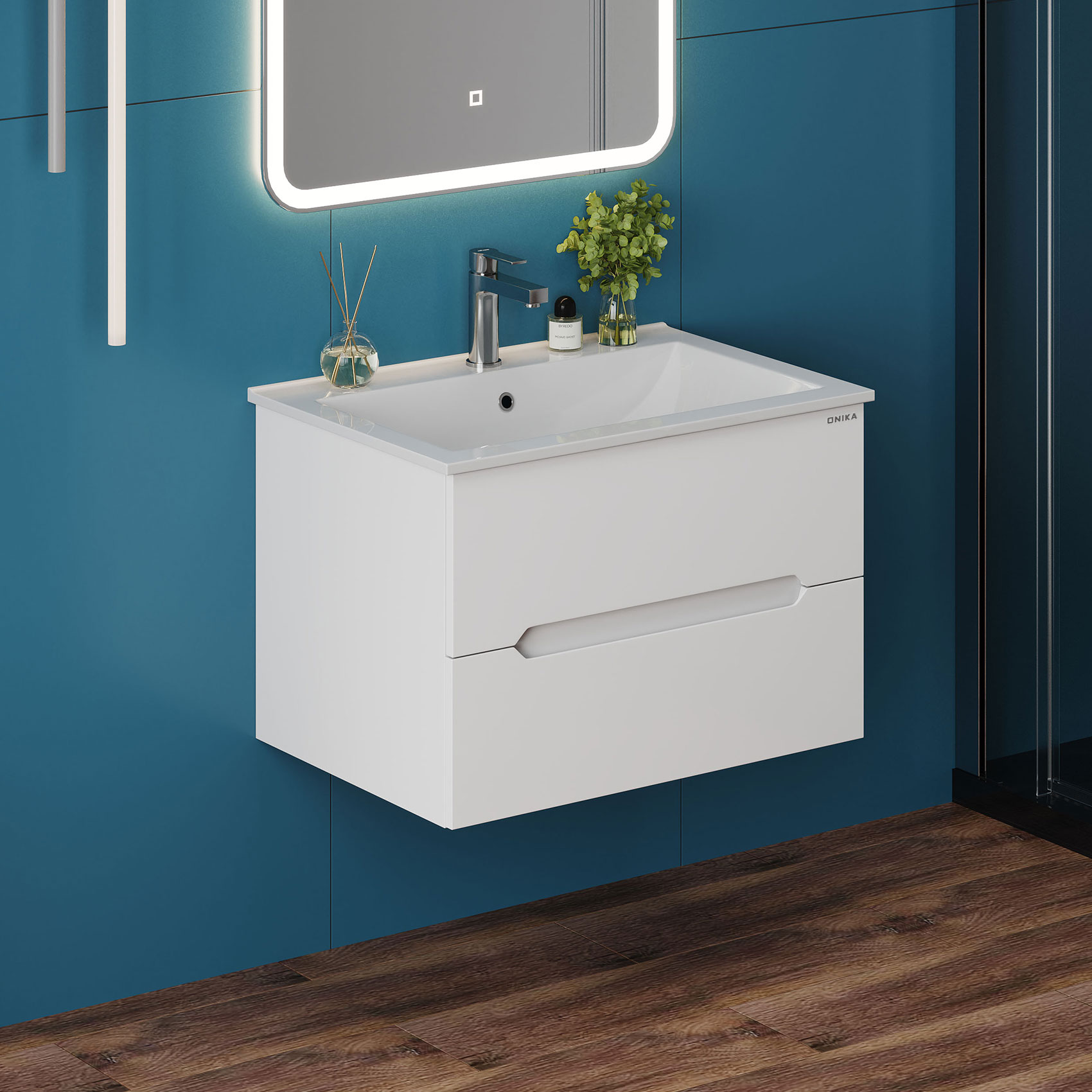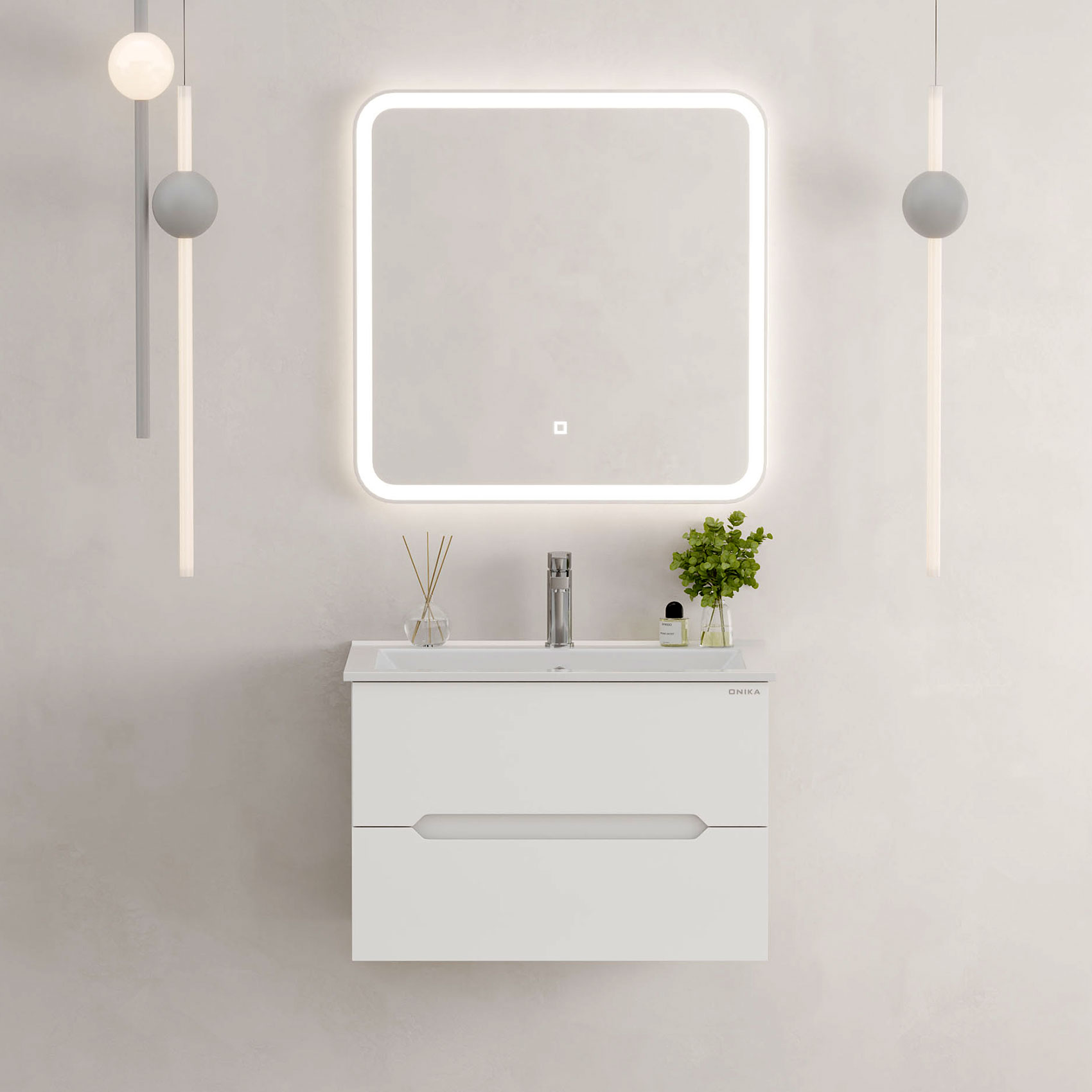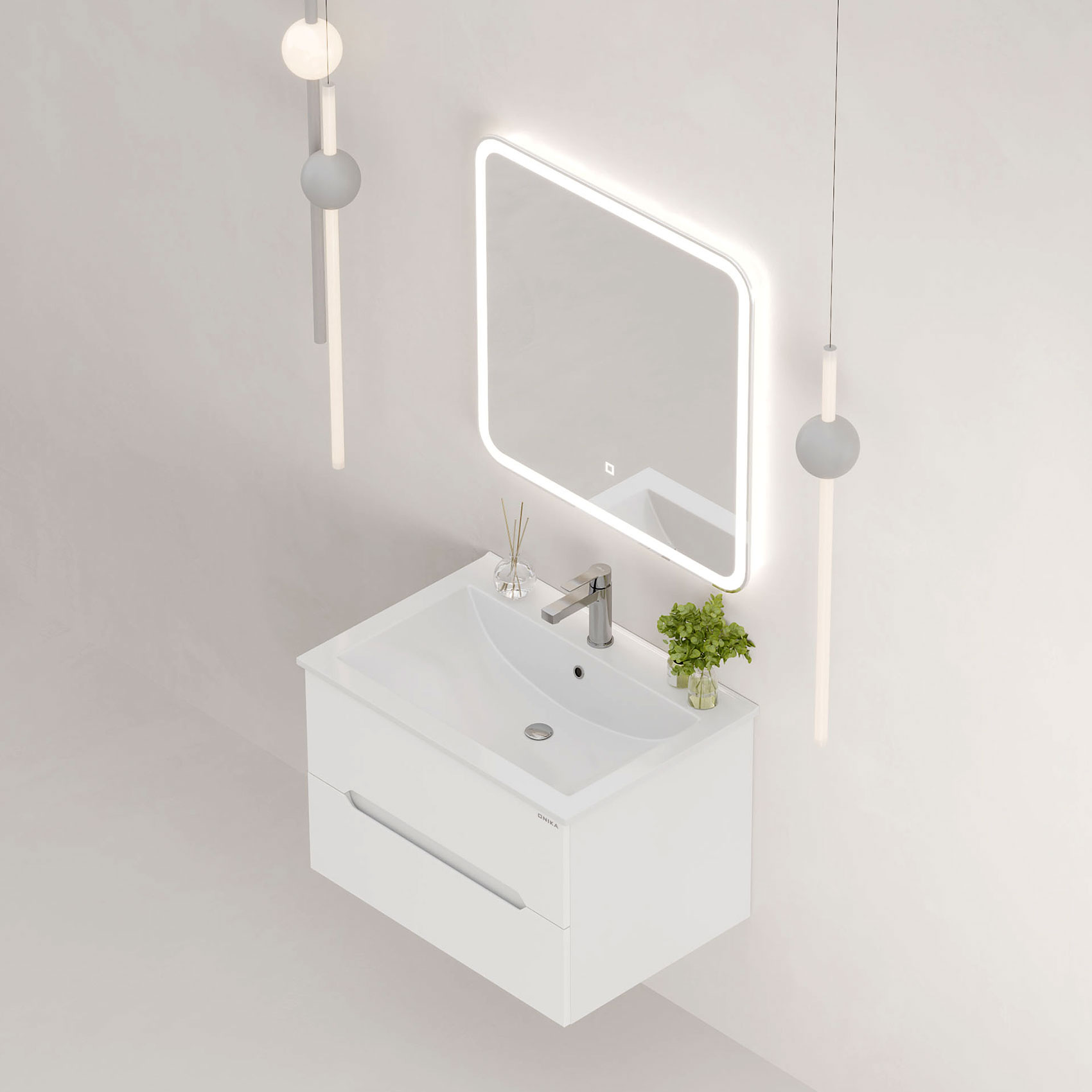 Тумба под раковину подвесная Onika Айленд 70 см (Керамин Бергамо Нова) белый 107063