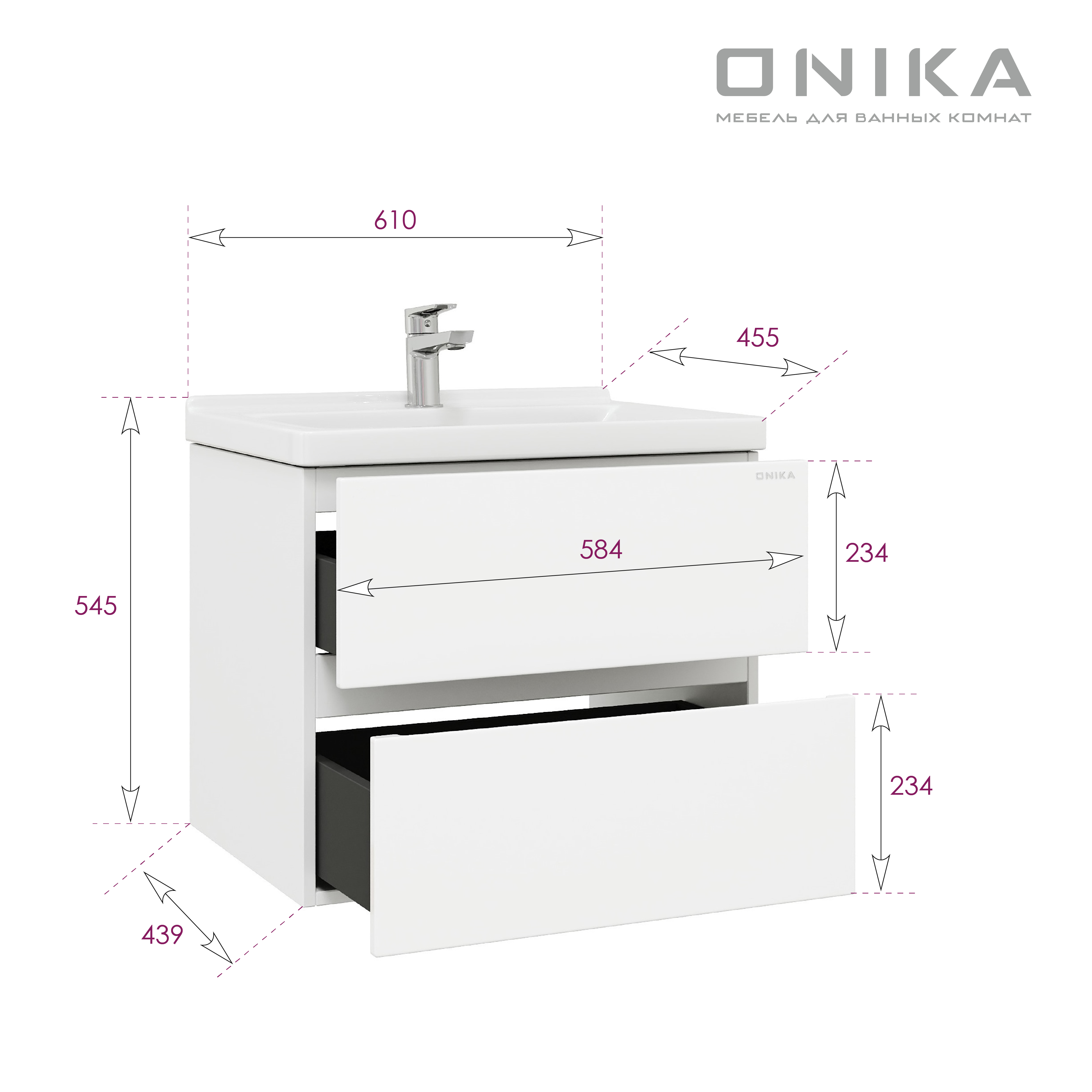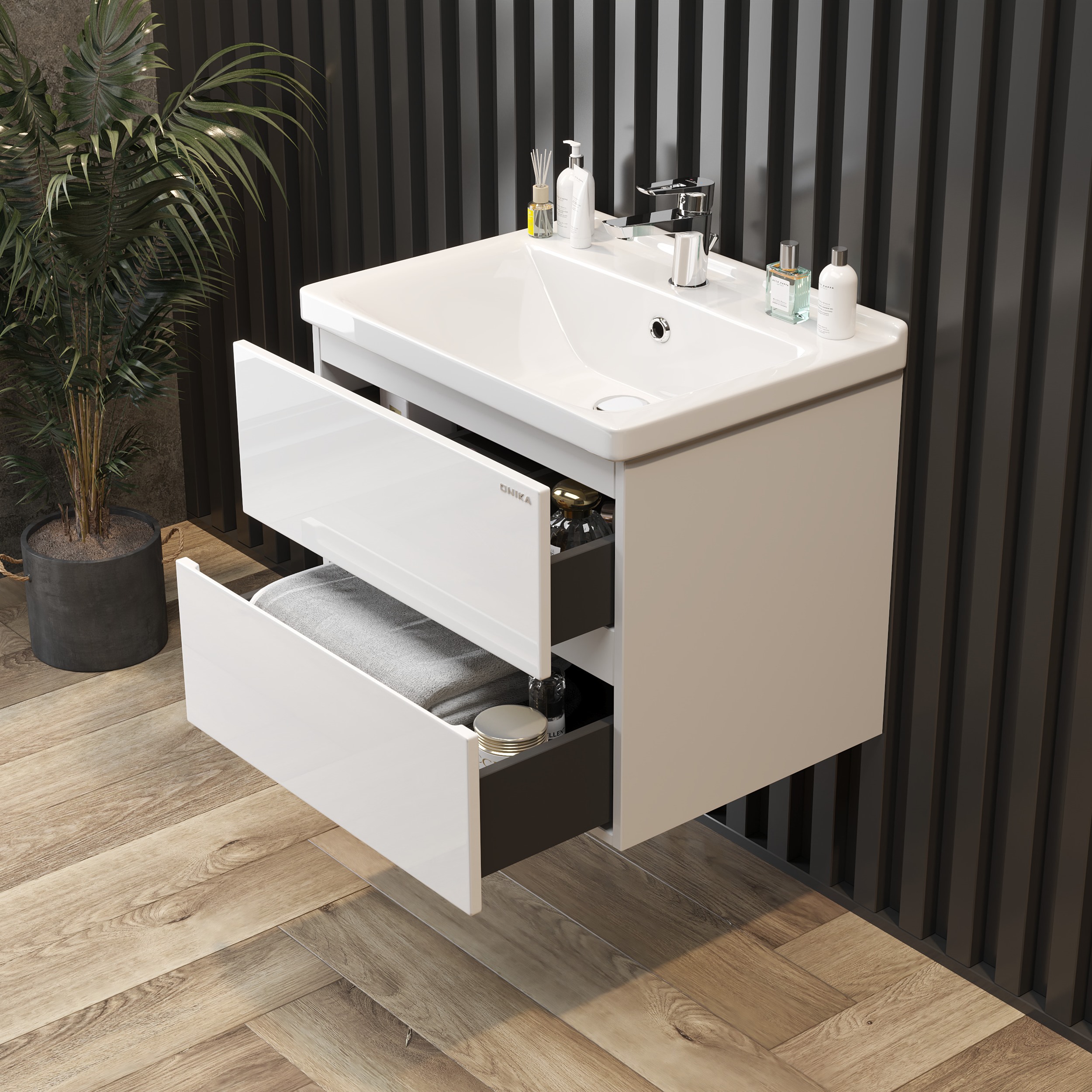 Подвесная тумба для ванной комнаты Onika Эвада 60 сочетает в себе стильный минималистичный дизайн, белую глянцевую поверхность и высочайшее качество исполнения. Два вместительных ящика с направляющими скрытого монтажа с доводчиками помогут организовать пространство в ванной комнате и компактно разместить необходимые вещи. Подвесная конструкция значительно упрощает процесс уборки в ванной комнате, а ручки, изящно интегрированные в фасады, позволяют сделать эксплуатацию более удобной и практичной. Тумба выполнена из ЛМДФ и ЛДСП, покрытых эмалью, устойчивой к механическим воздействиям, перепадам температур и высокой влажности. Подвесы для крепления тумбы - в комплекте.