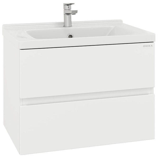 Подвесная тумба для ванной комнаты Onika Эвада 70 сочетает в себе стильный минималистичный дизайн, белую глянцевую поверхность и высочайшее качество исполнения. Два вместительных ящика с направляющими скрытого монтажа с доводчиками помогут организовать пространство в ванной комнате и компактно разместить необходимые вещи. Подвесная конструкция значительно упрощает процесс уборки в ванной комнате, а ручки, изящно интегрированные в фасады, позволяют сделать эксплуатацию более удобной и практичной. Тумба выполнена из ЛМДФ и ЛДСП, покрытых эмалью, устойчивой к механическим воздействиям, перепадам температур и высокой влажности. Подвесы для крепления тумбы - в комплекте.