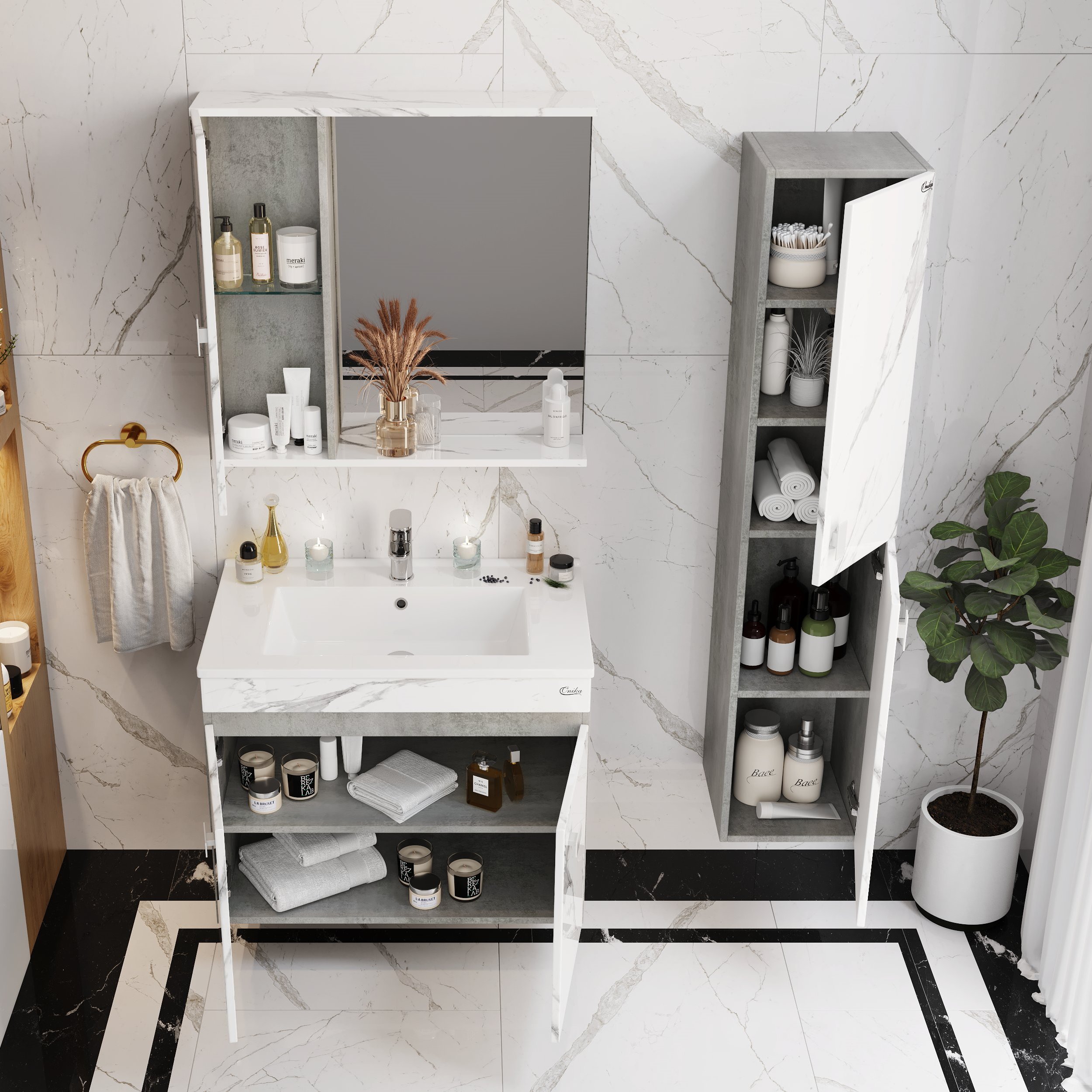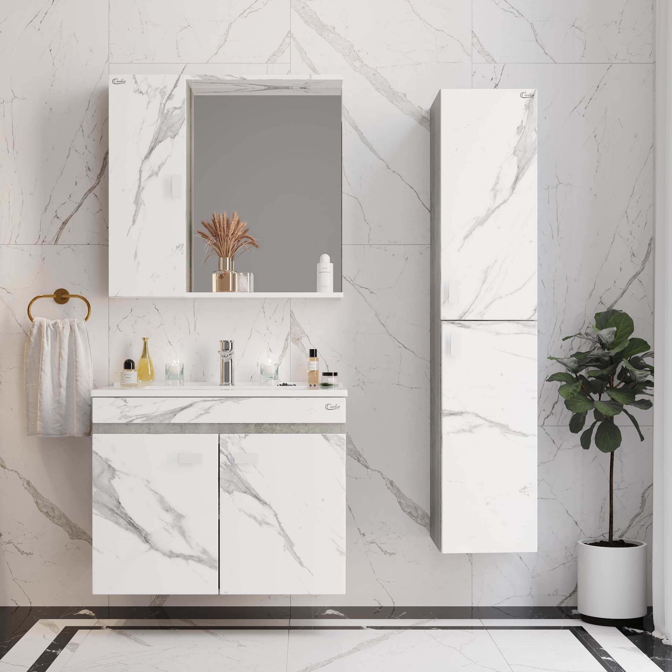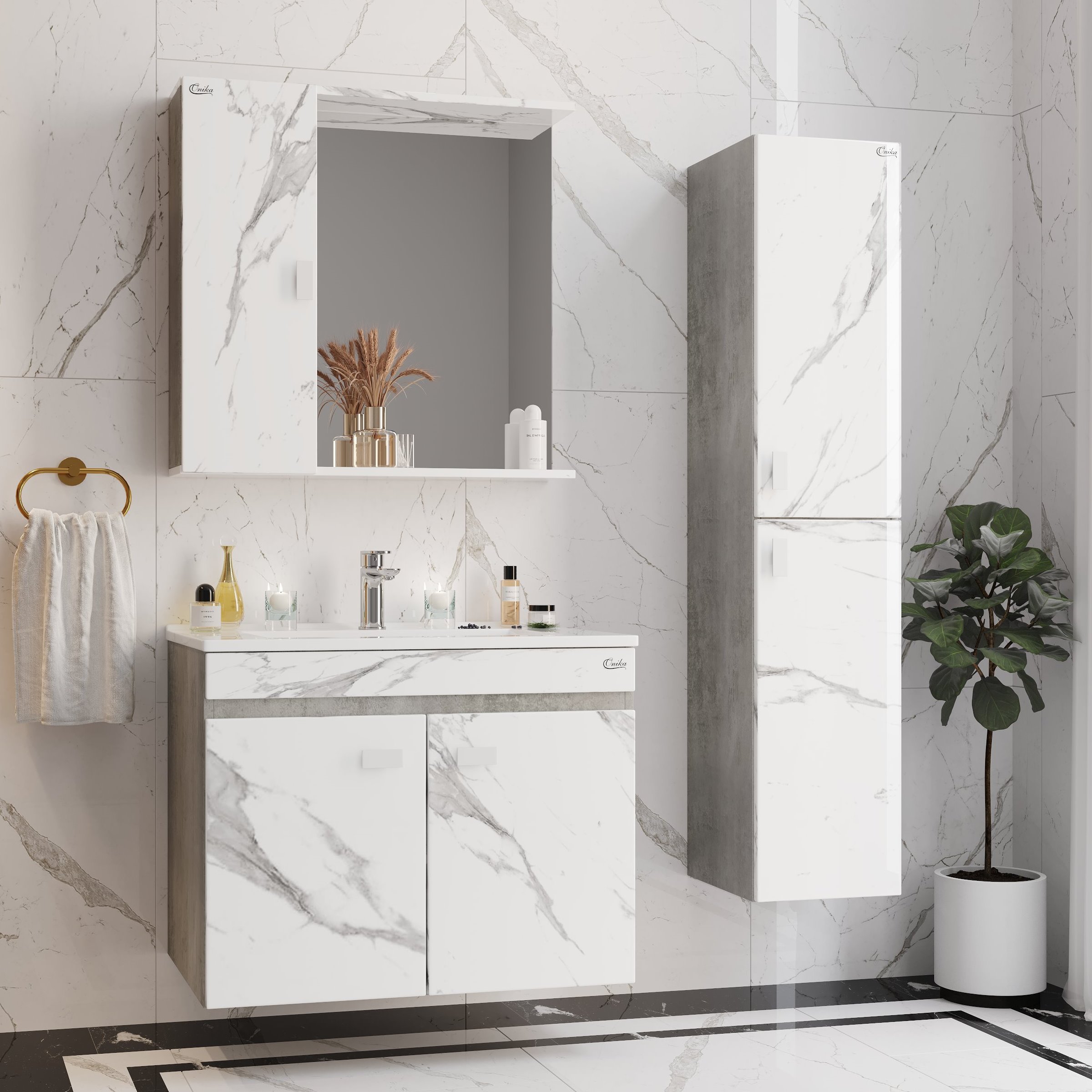 Подвесная тумба Onika Марбл 75 станет стильным и функциональным элементом пространства современной ванной комнаты. Спроектированная дизайнерами в минималистичном облике, тумба отражает самые актуальные расцветки сезона - бетон и мрамор. Пространство за 2-ми распашными дверцами, снабженными системой плавного закрывания, станет удобным местом для хранения необходимых в ванной комнате вещей. Белые матовые ручки практически не заметны на фасаде и не отвлекают взгляд от текстуры мрамора. Корпус тумбы выполнен из ЛДСП, фасады ящиков - из ЛМДФ в пленке, устойчивых к механическим воздействиям, перепадам температур и высокой влажности. Тумба надежно крепится к стене и не занимает место на полу, не создавая при этом сложностей в уборке помещения. Подвесы для крепления тумбы и 4 белые матовые ручки - в комплекте.