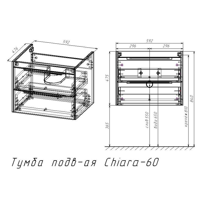 Тумба под раковину подвесная Vincea Chiara 2D 60 см C.Oak VMC-2C2600CO