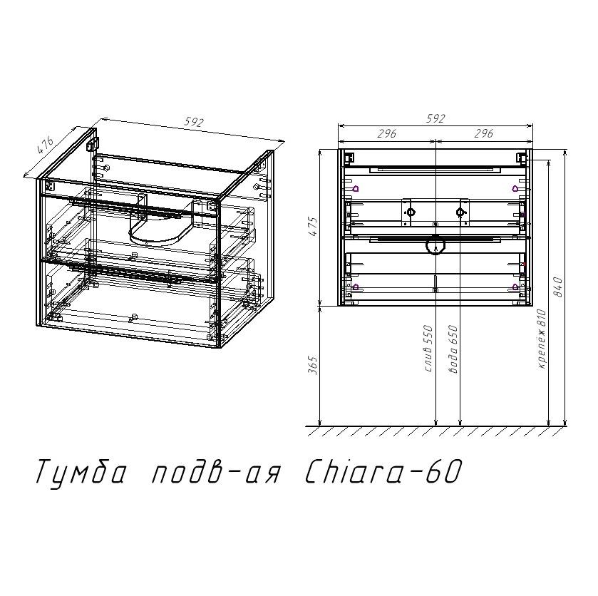 Тумба под раковину подвесная Vincea Chiara 2D 60 см G.Stone VMC-2C2600GS