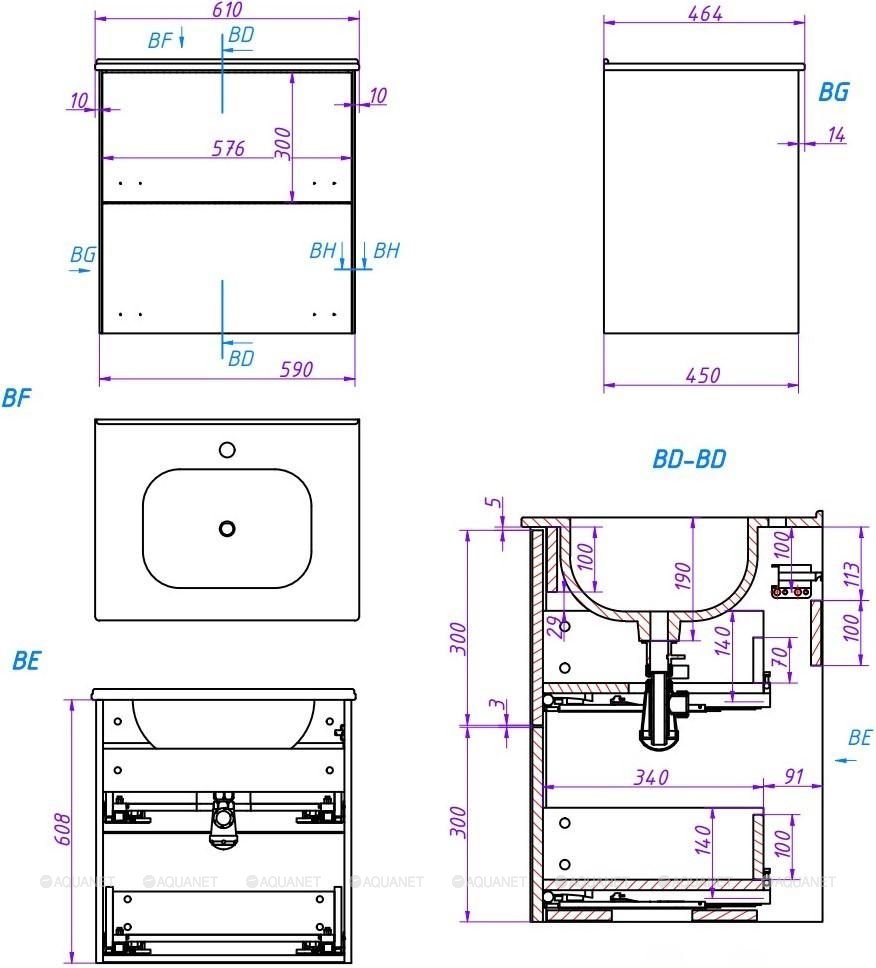 Тумба под раковину/ столешницу подвесная La Fenice Terra Twin 60 см бежевый FNC-01-TER-C-60-2