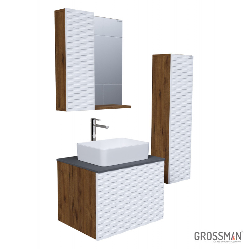 Тумба подвесная под раковину Grossman Альба 65 см веллингтон/белый 106503