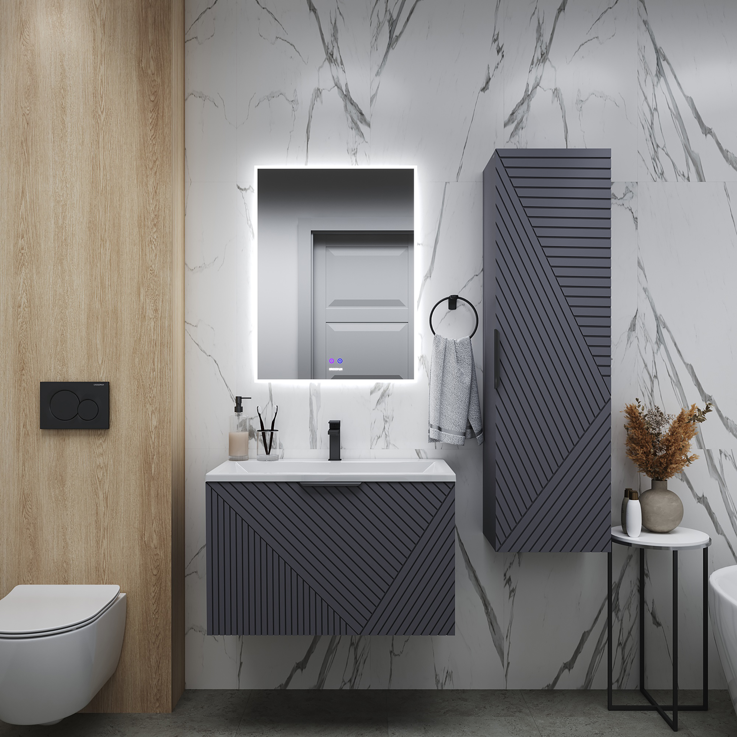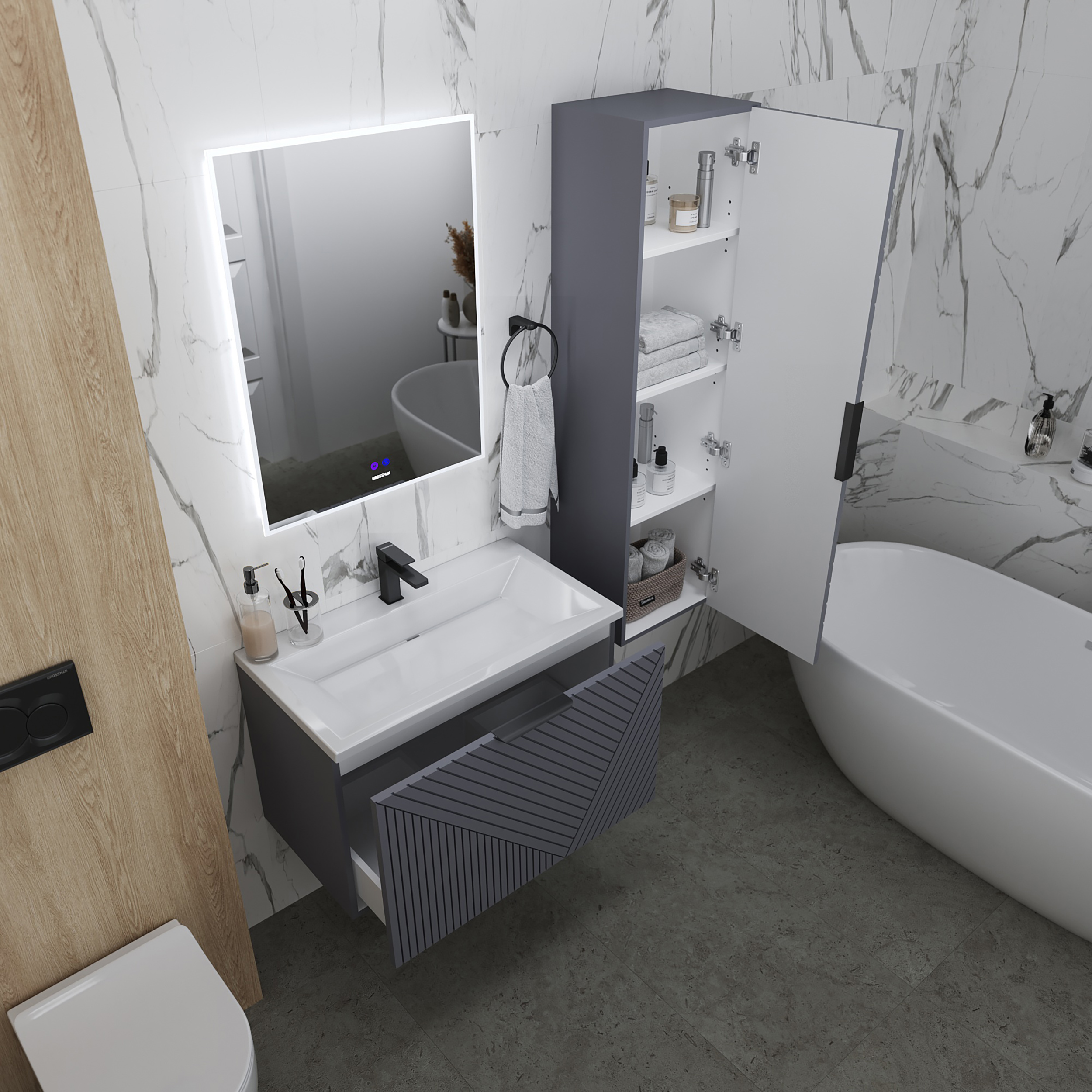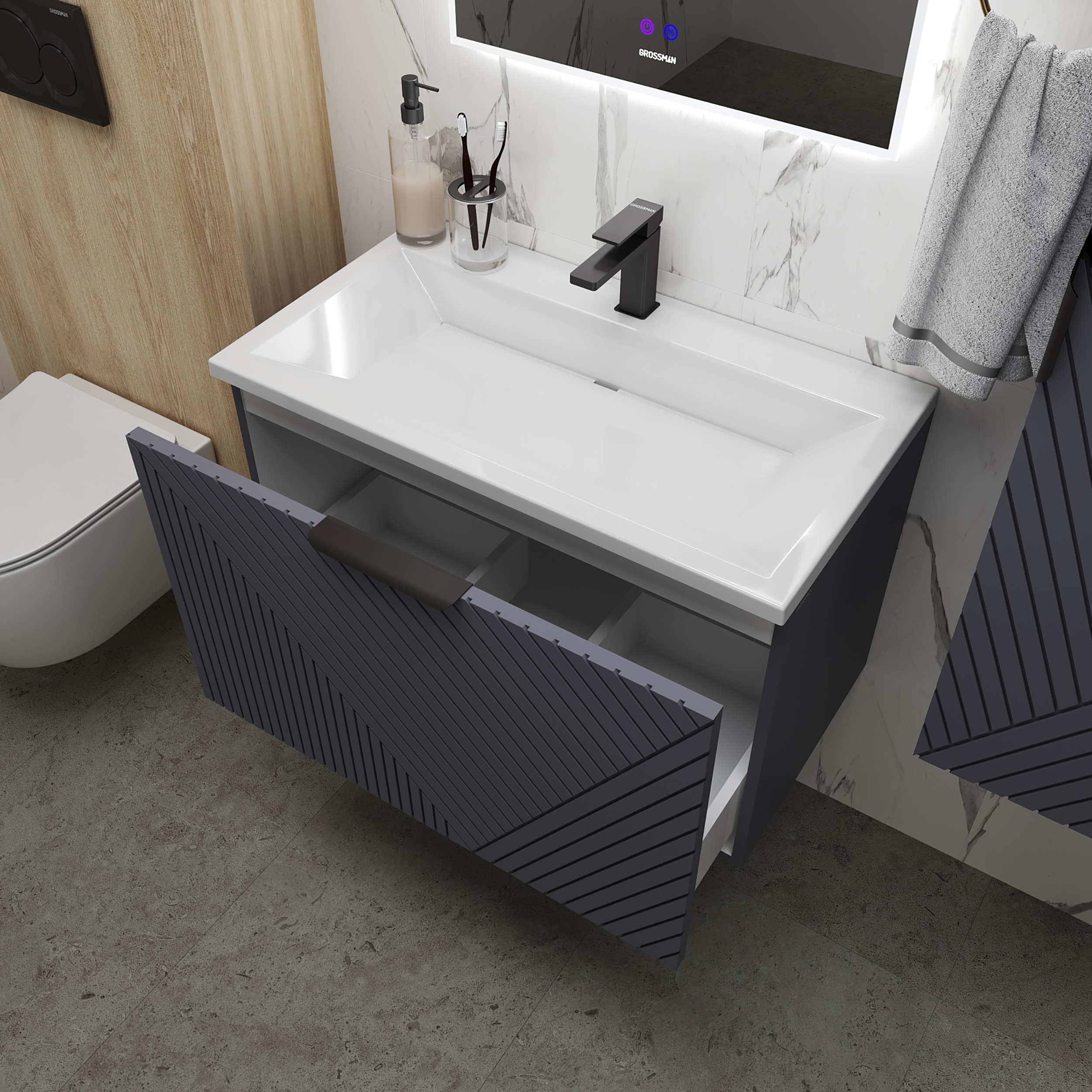 Тумба подвесная под раковину Grossman Блисс 70 см графит матовый 107053