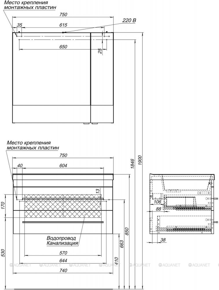 | Раковина | Литьевой мрамор /приобретается отдельно |