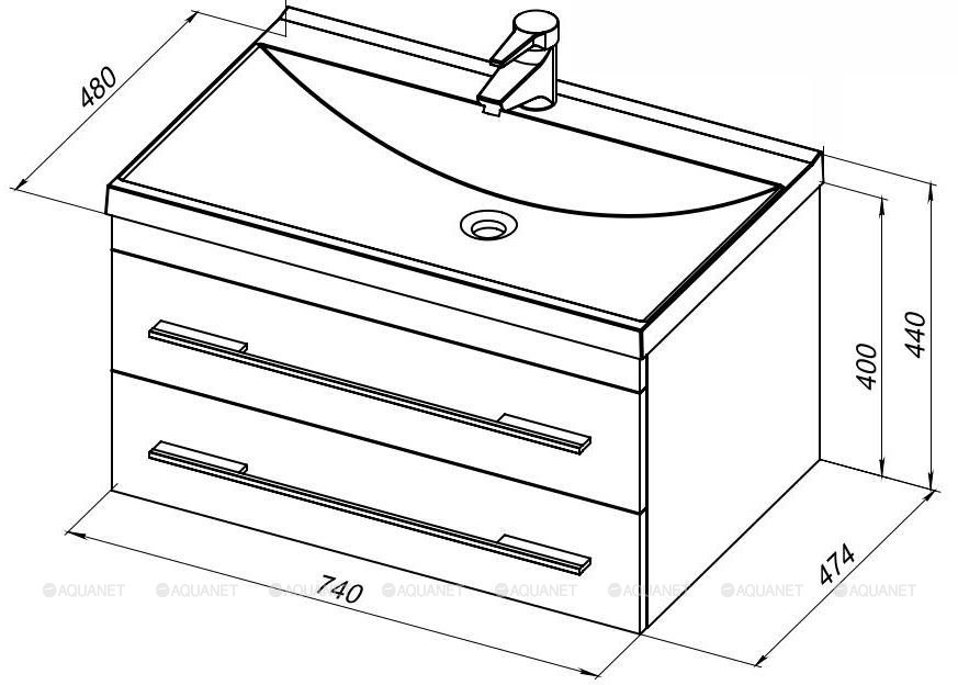 Тумба под раковину подвесная Aquanet Верона 75 см 2ящ белый 176669