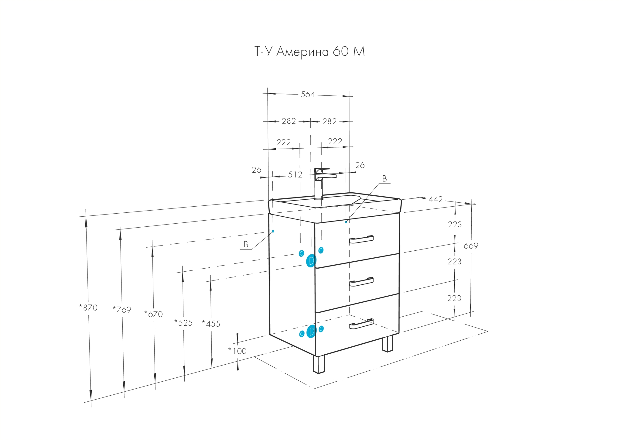 Тумба с раковиной Aquaton Америна 60 см М (Тигода) 1A1689K1AM010