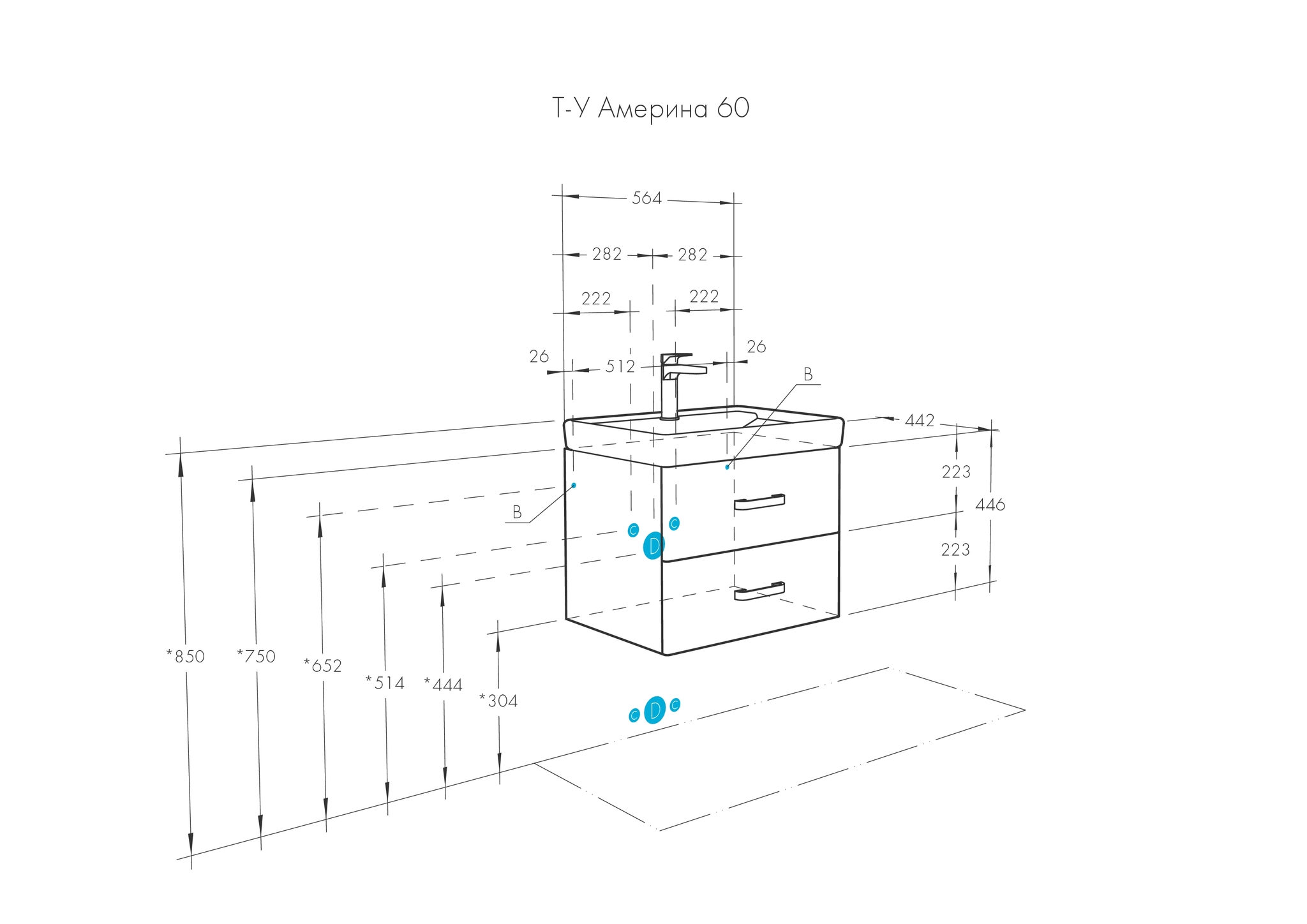 Тумба с раковиной Aquaton Америна 60 см (Тигода) 1A1354K1AM010