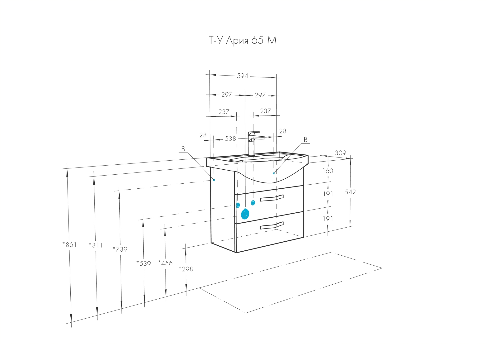 Тумба с раковиной Aquaton Ария 65 см М (Смайл) 1A1233K0AA010