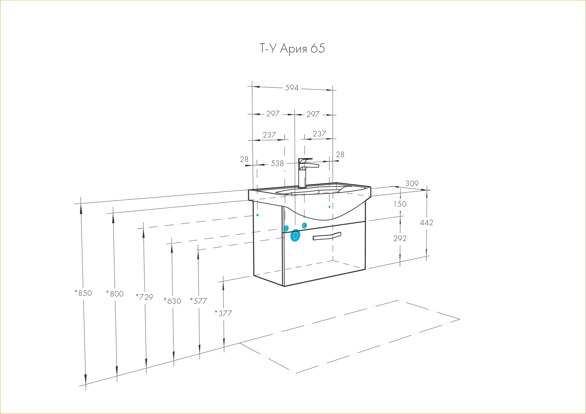 Тумба с раковиной Aquaton Ария 65 см (Смайл) 1A1340K0AA010