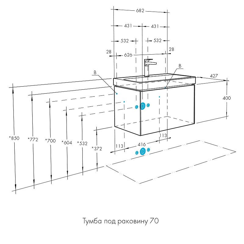 Тумба с раковиной Aquaton Асти 70 см (Адриана) белый 1A2630K0AX2B0