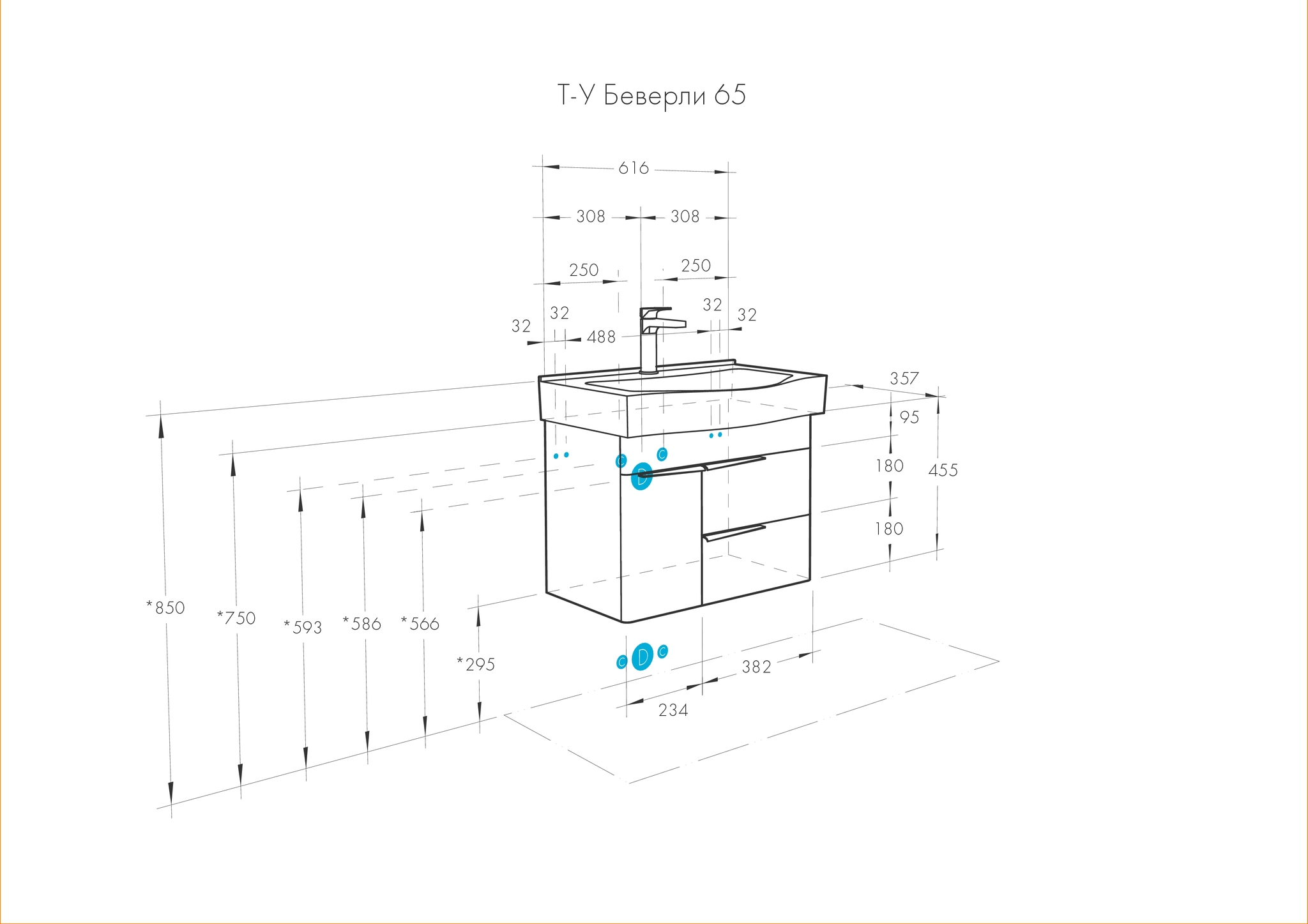 Тумба с раковиной Aquaton Беверли 65 см (Беверли) белый 1A2353K0BV010