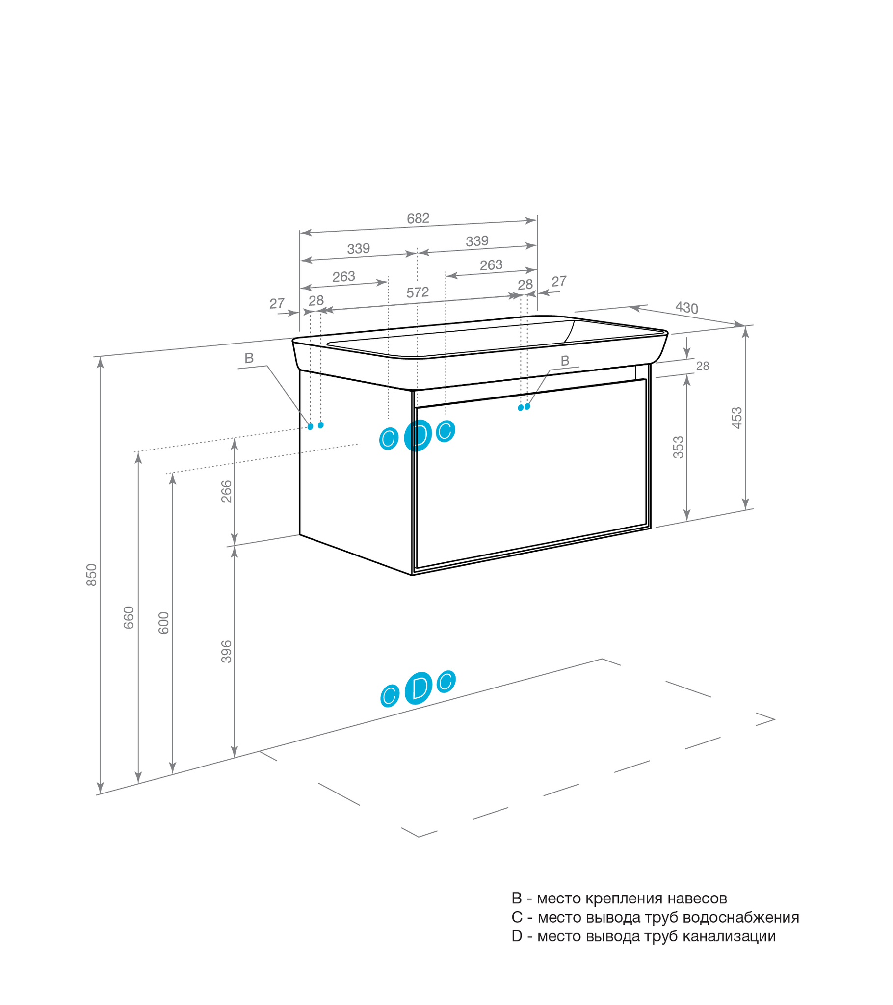 Тумба с раковиной Aquaton Либерти 70 см (Адриана) 1A2798K0LYC70