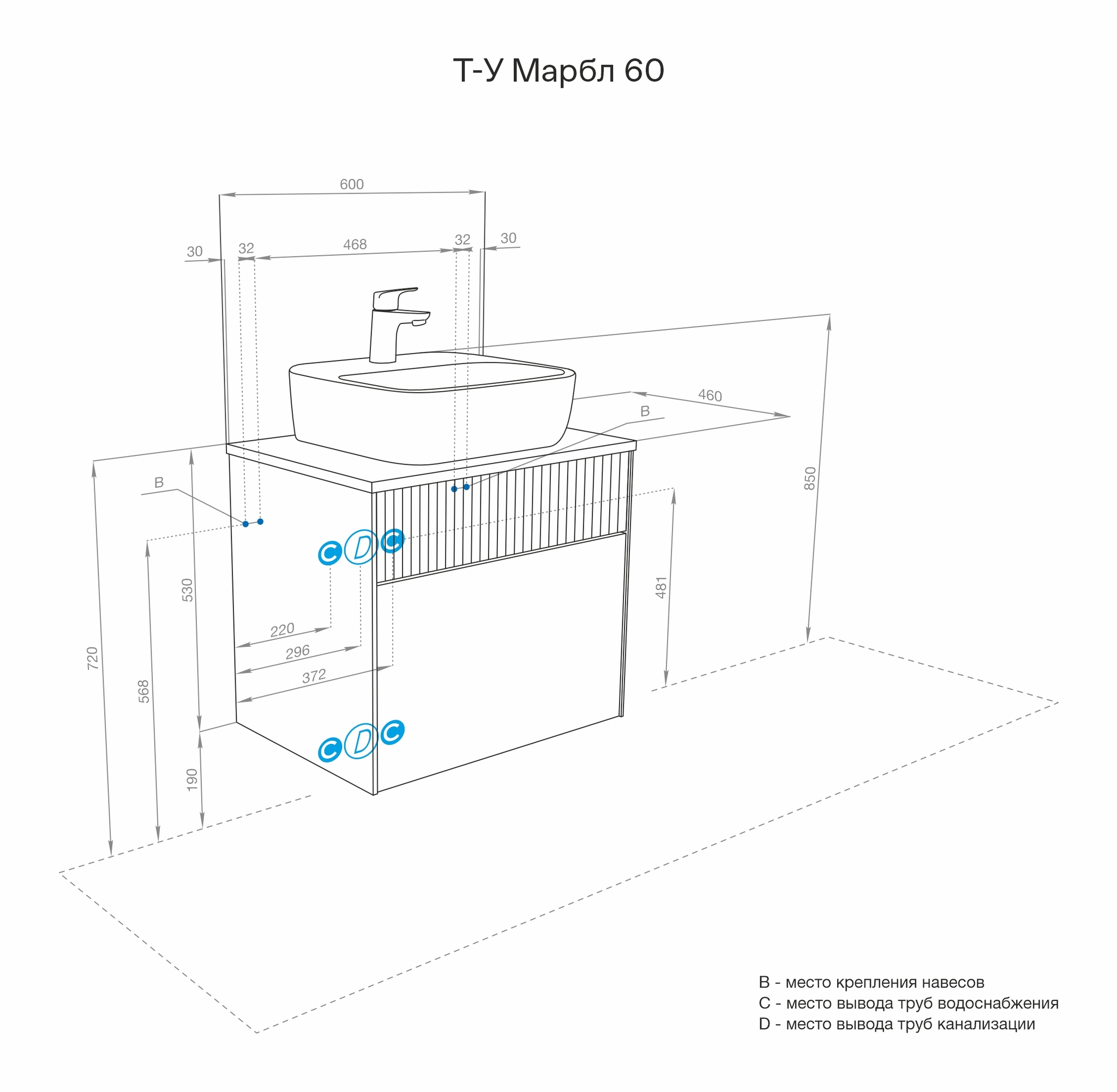 Тумба с раковиной Aquaton Марбл 60 см (Mila) 1A2761K1MH4C0