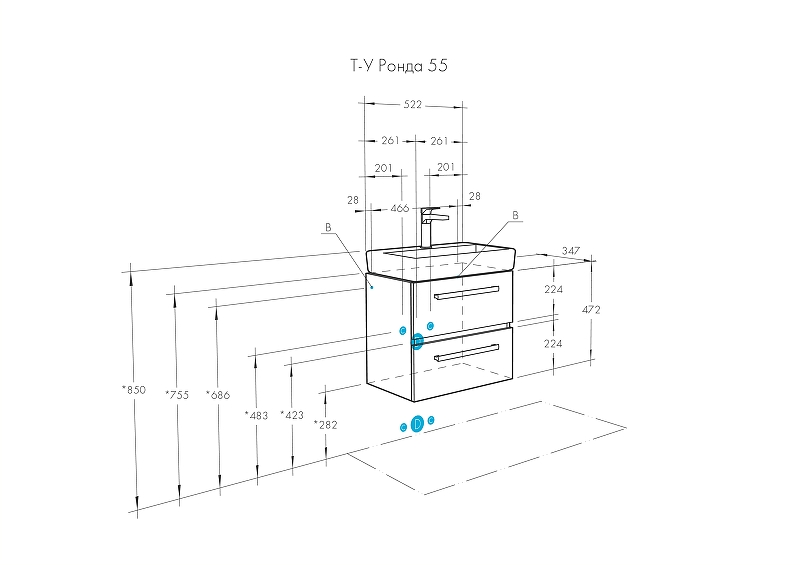 Тумба с раковиной Aquaton Ронда 55 см (Тигода мини) дуб сомерсет 1A2076K1RSC20