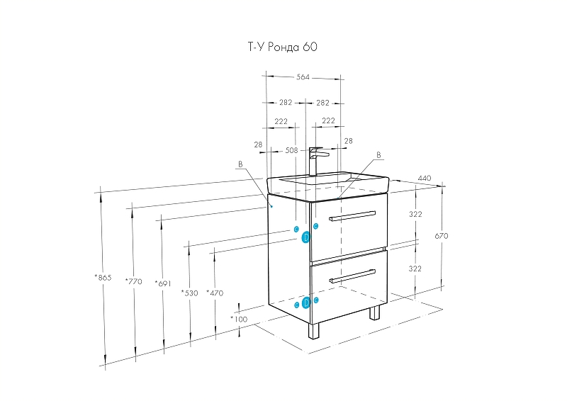 Тумба с раковиной Aquaton Ронда 60 см (Тигода) дуб сомерсет 1A2050K1RSC20