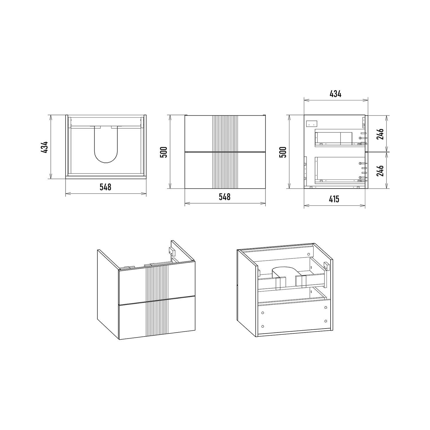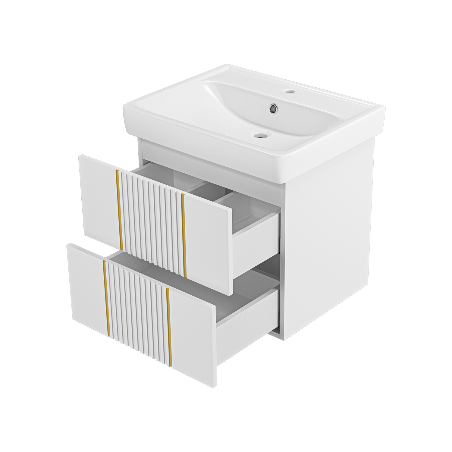 Эта уникальная коллекция включает в себя подвесные тумбы с ящиками (направляющие скрытого монтажа, Push-to-Open), выполненные в трех размерах - шириной 60, 70 и 80 сантиметров.