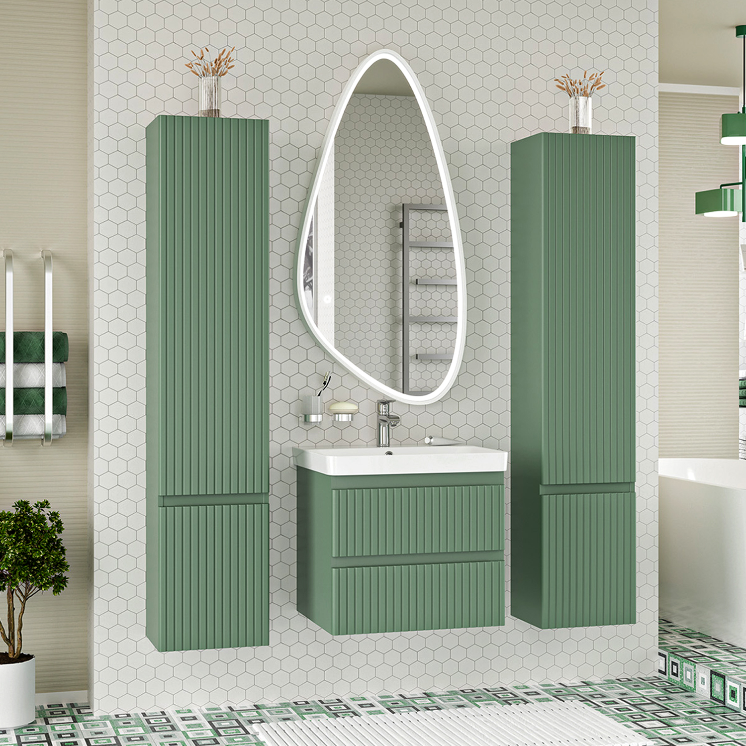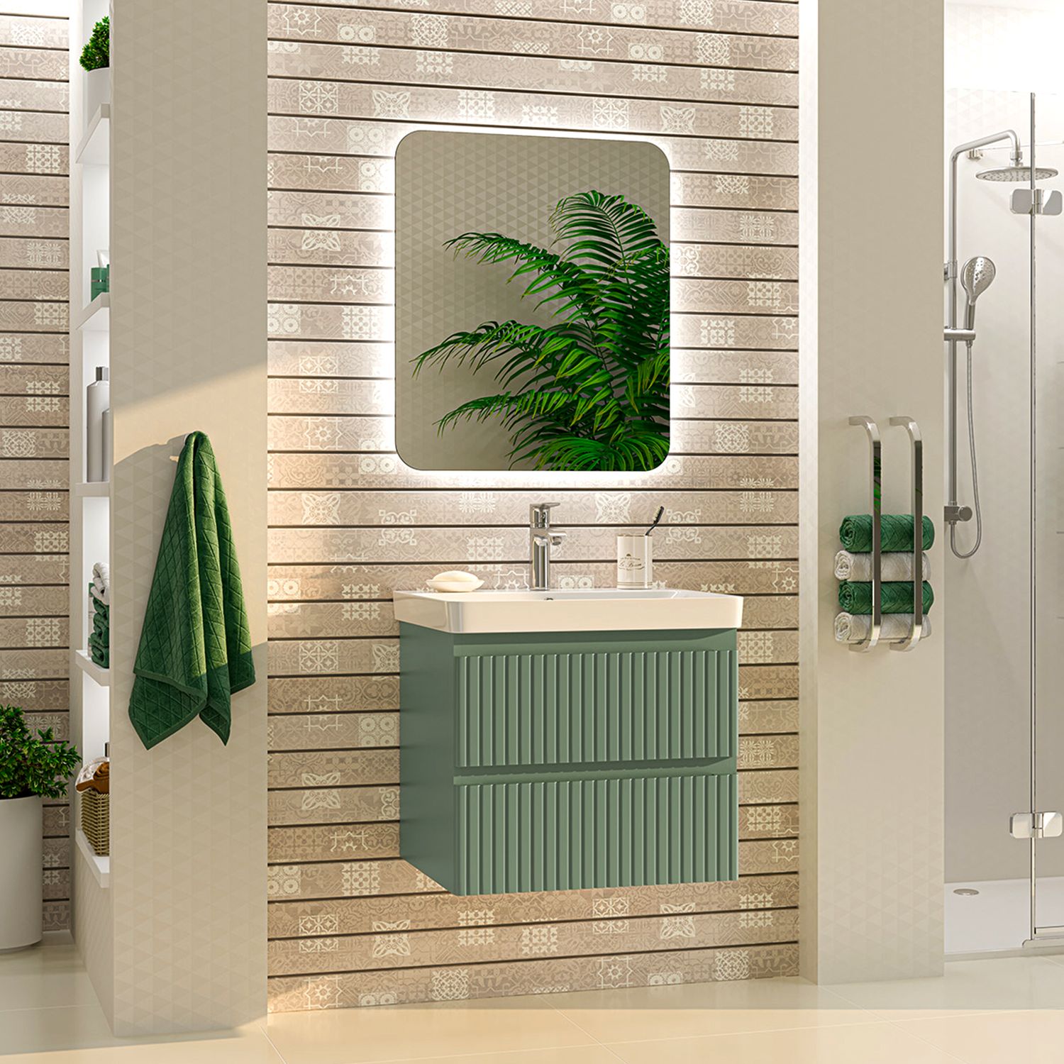 Тумба с раковиной Brevita Victory 60 зеленый УТ000015997