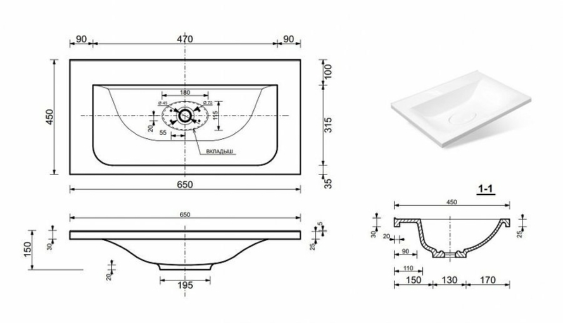 | Раковина | Литьевой мрамор Бали 65 |