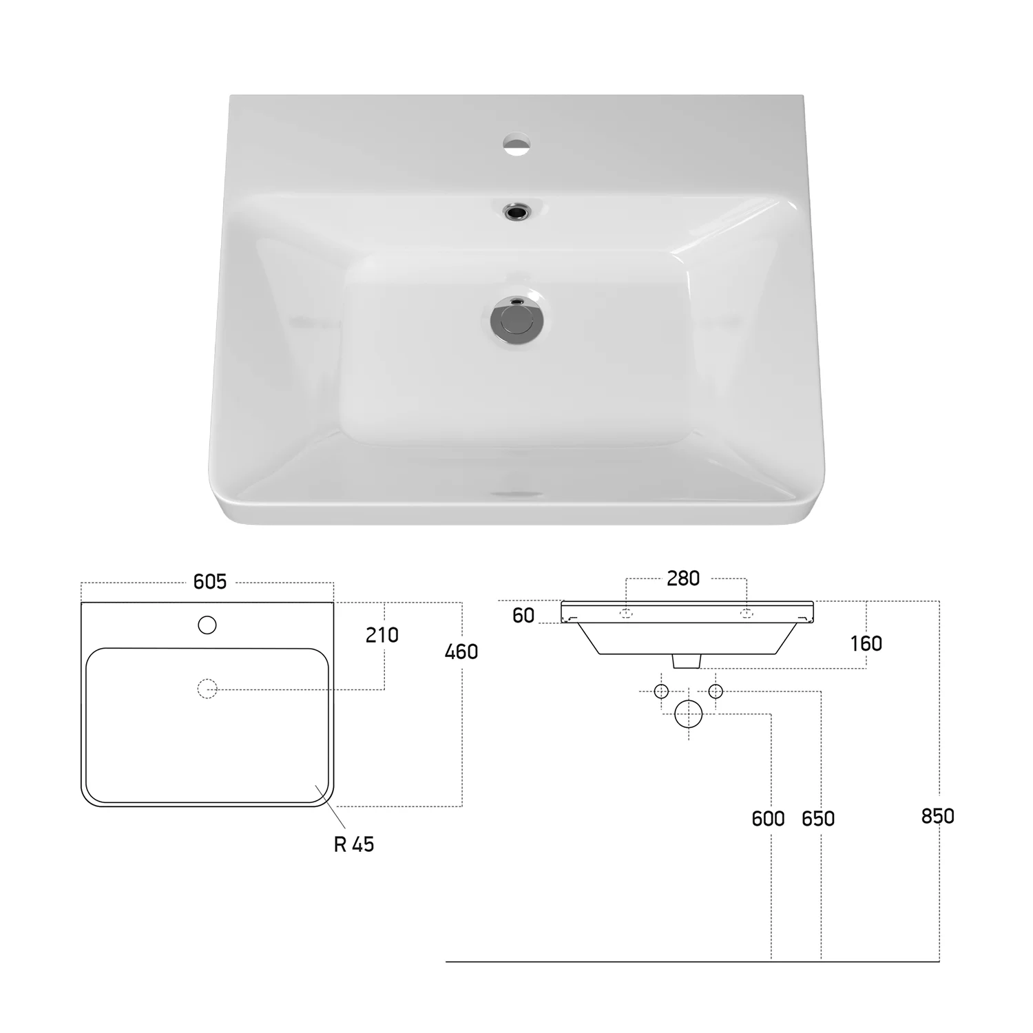 | Раковина | Дрея LUXURY 60,5х46 см, керамика |