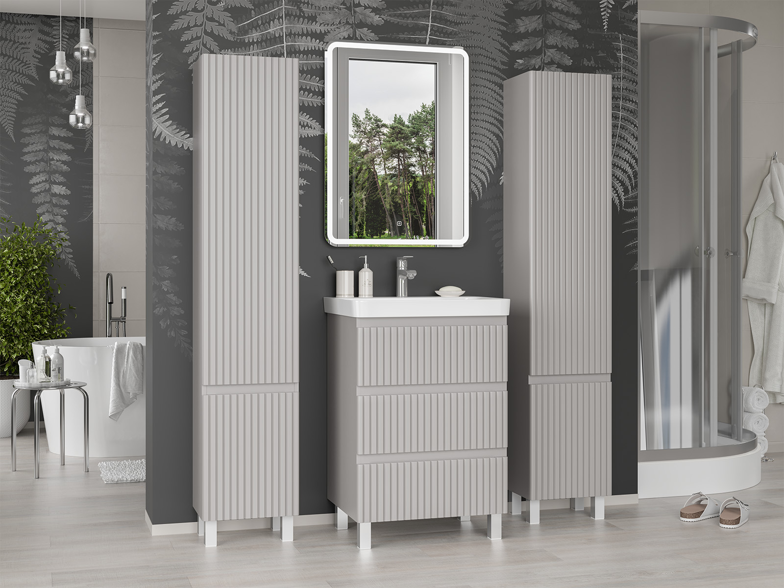 Тумба с раковиной напольная Brevita Victory 60 см (Дрея) серый шелк УТ000023620