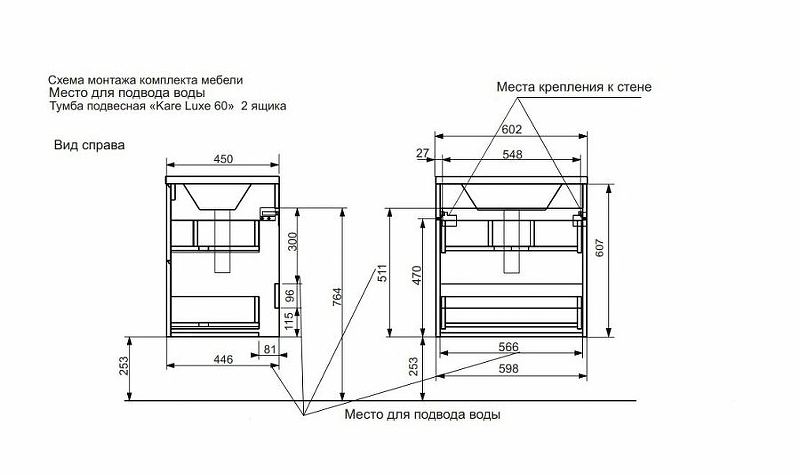 Тумба с раковиной подвесная Эстет Kare Luxe 60 см 2ящ ФР-00007074