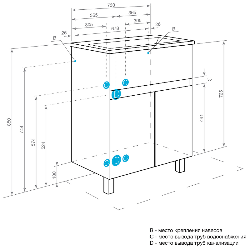 | Система хранения | 1 ящик push-to-open, 2 дверцы с доводчиком |