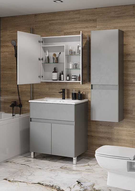 Тумба с раковиной подвесная/ напольная Aquaton Форест 75 см (Элина) туманный серый 1A2783K0FR4D0
