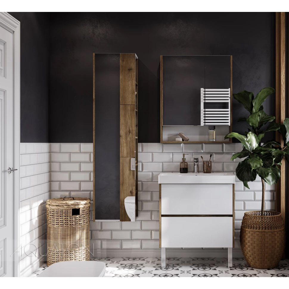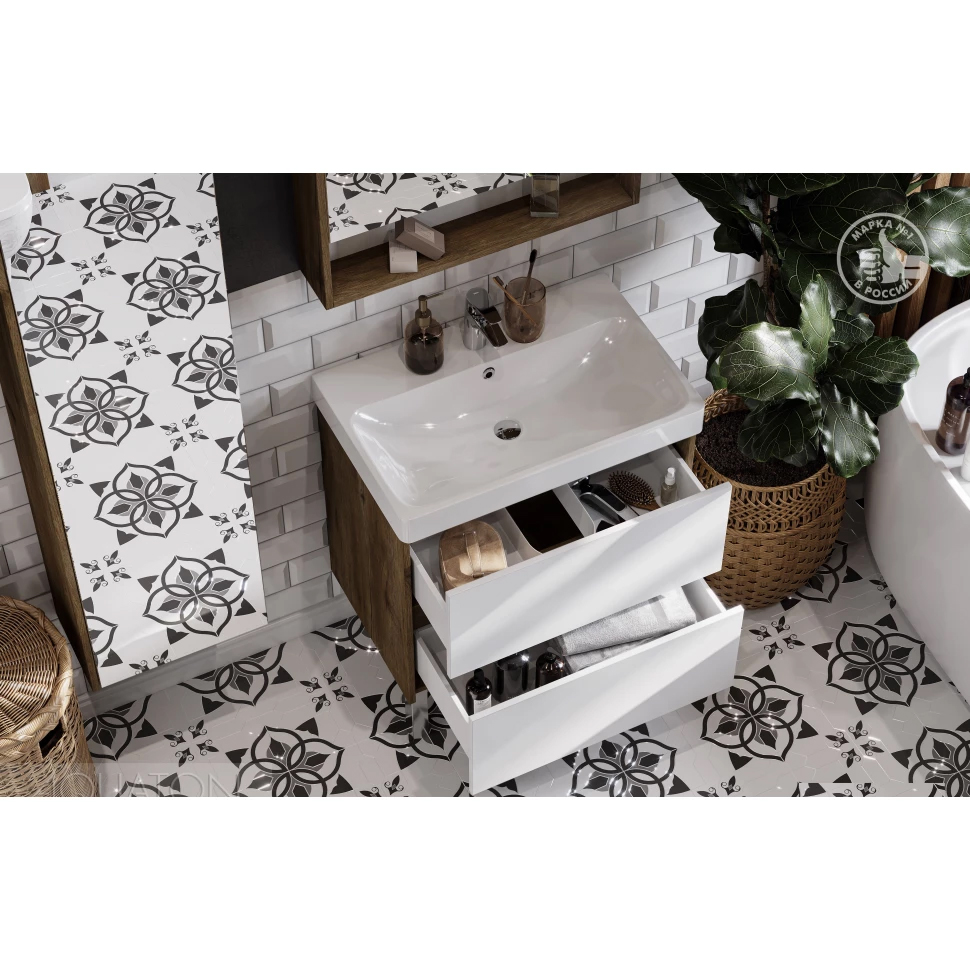 Тумба с раковиной подвесная/ напольная Aquaton Сканди 70 см (Адриана) белый/ дуб рустикальный 1A2518K0SDZ90
