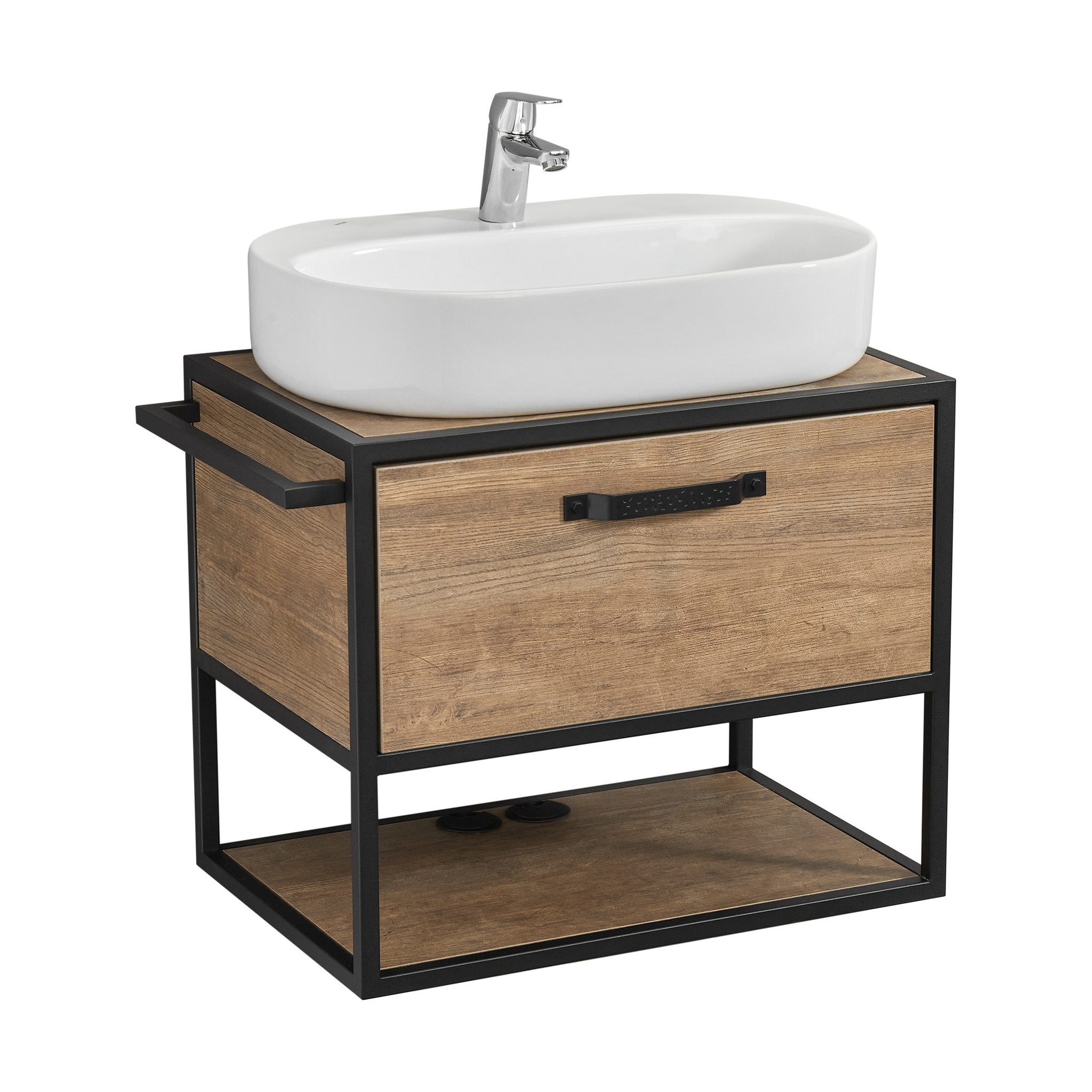 Тумба со столешницей и раковиной Aquaton Лофт Фабрик 65 см (Одри Round) дуб кантри 1A2423K1LTDY0