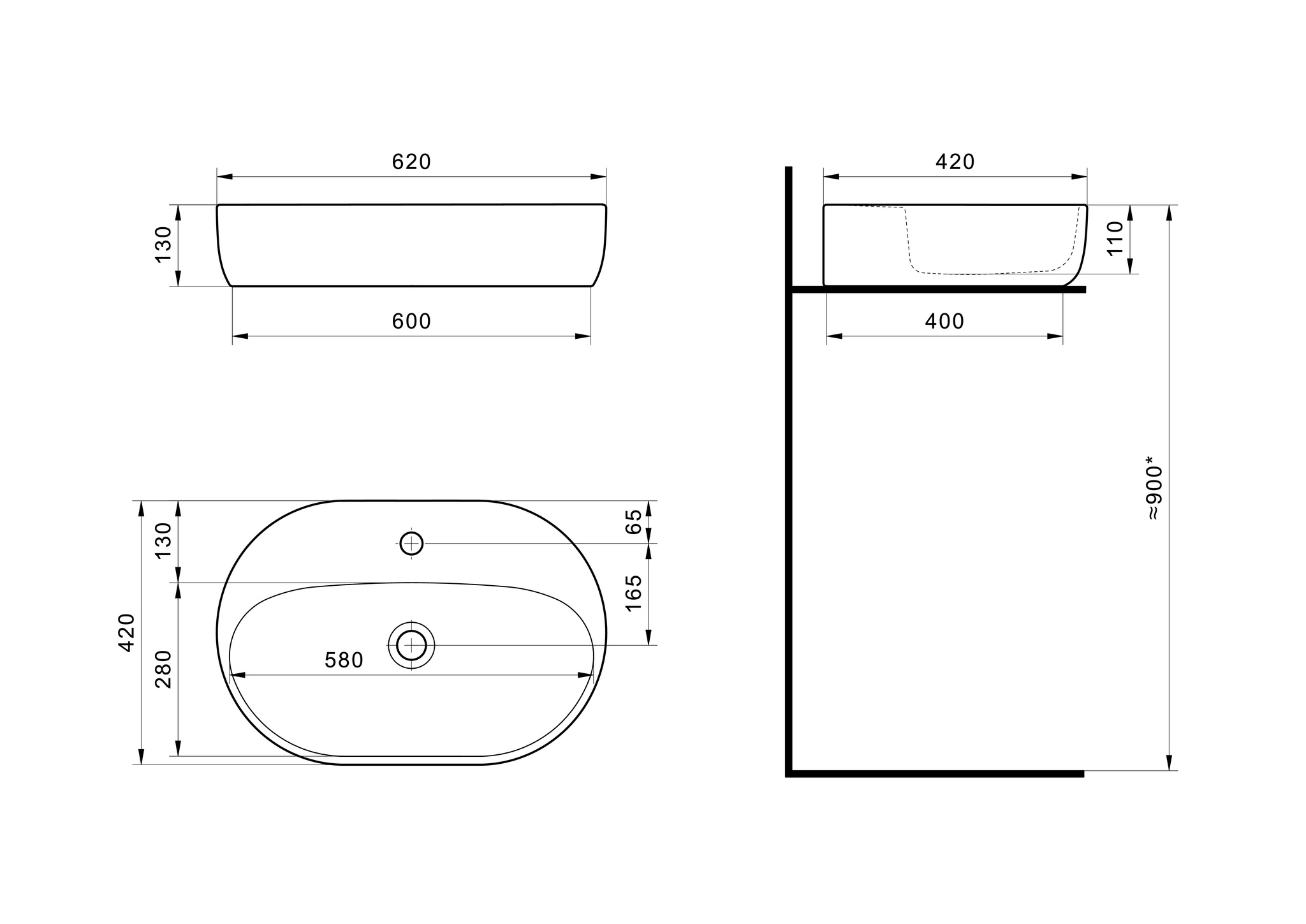 | Раковина | Santek Одри Round 62х42 см фарфор |