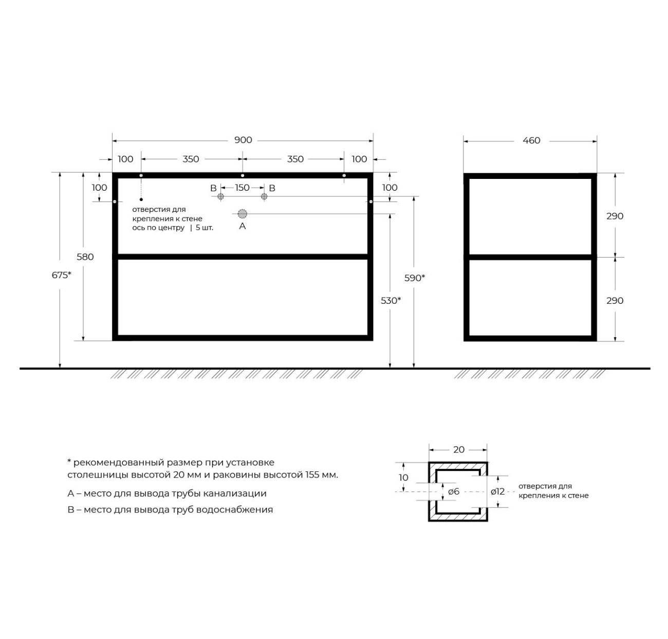 Двухъярусный подвесной стальной сварной каркас под раковину, 90х46х58 см