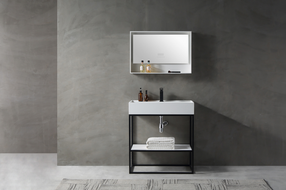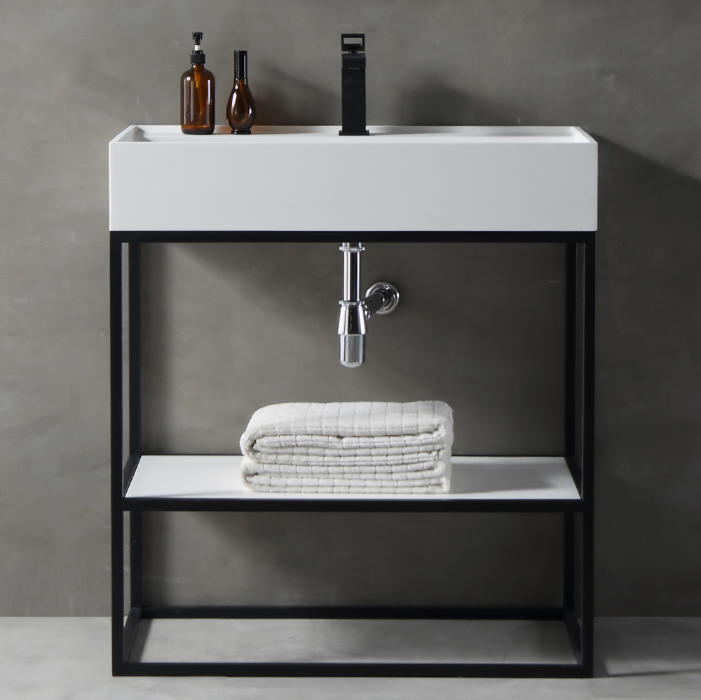- Консоль с раковиной напольная ABBER Stein 80 см белый матовый AS2630