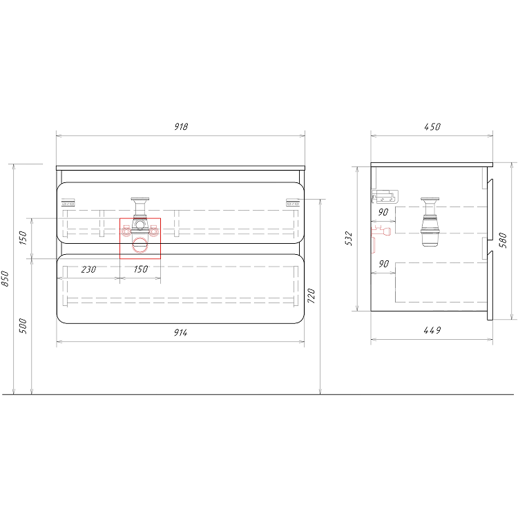 | Раковина | Malaga 90 L литьевой мрамор/ приобретается отдельно |