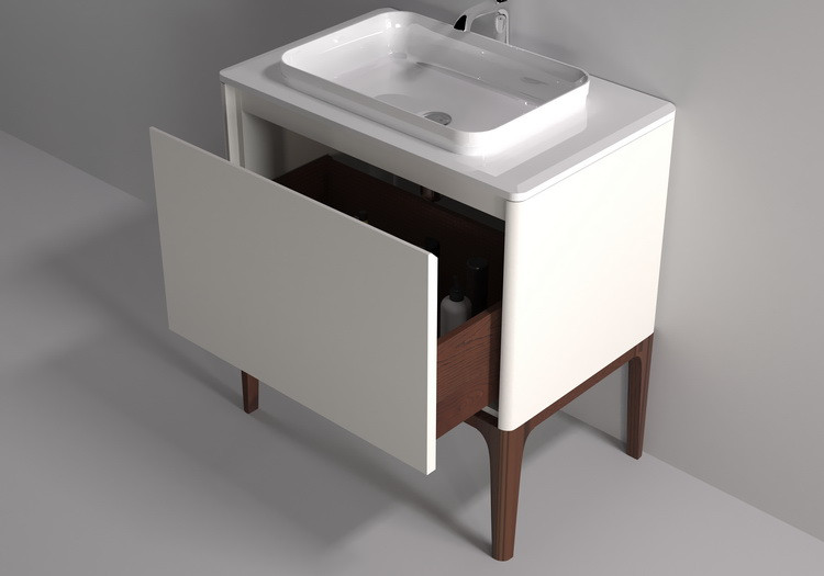 Детали фасадов мебели для ванных комнат производства компании Asrta-Form изготовлены из MDF. Отделка корпусных и фасадных деталей производится лакокрасочными материалами итальянского производства и натуральным шпоном. Поверхность мебели может быть глянцевой или матовой. Раковина изготовлена из литого мрамора. Столешница по Вашему выбору может быть изготовлена из литого или натурального мрамора. Все столешницы в стандартном исполнении имеют вырезы под смеситель в штатных местах, утвержденных производителем. При заказе столешницы из литого мрамора все раковины в стандартном исполнении смонтированы (встроены) на столешницу в штатных местах, утвержденных производителем. При заказе столешницы из натурального мрамора все раковины поставляются без монтажа на столешницу, при этом столешница из натурального мрамора имеет вырез под монтаж раковины в штатных местах, утвержденных производителем.