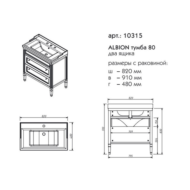 Тумба под раковину Caprigo Albion 80 см ящики массив 10315 цвета разные