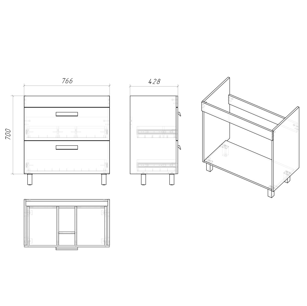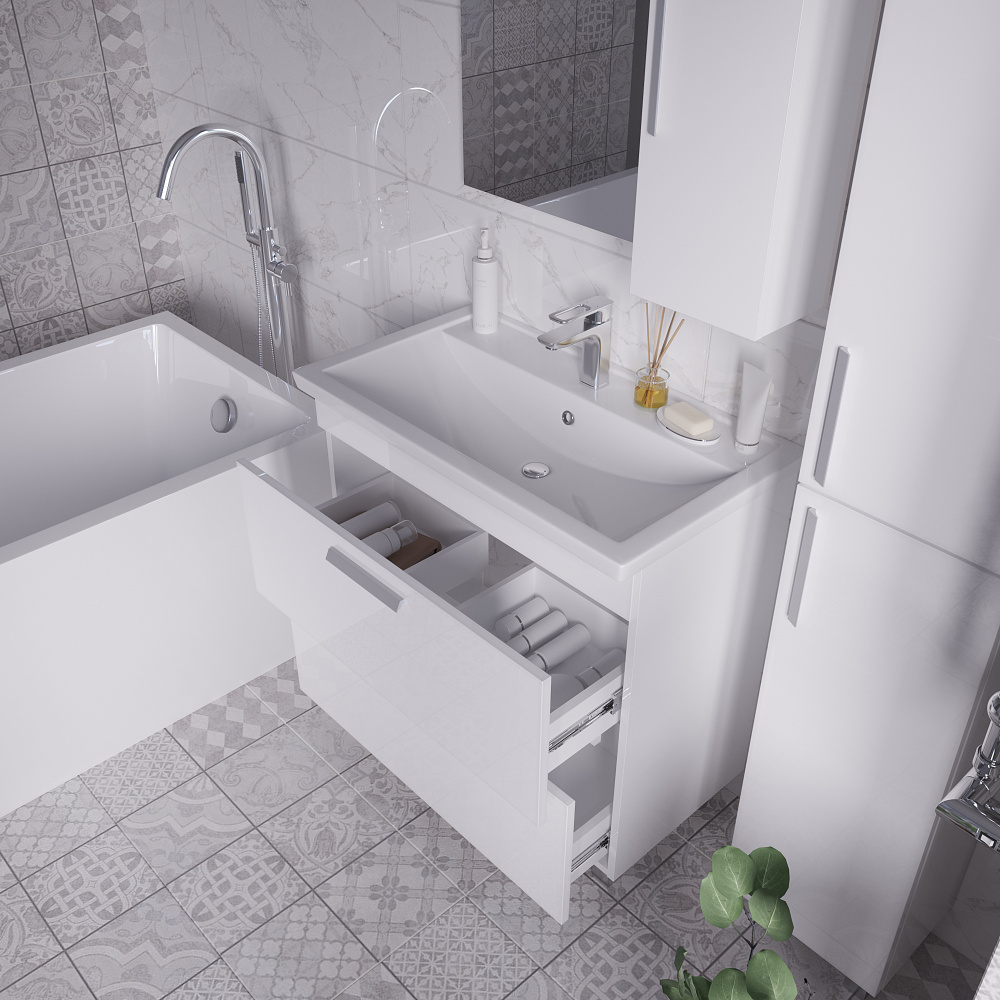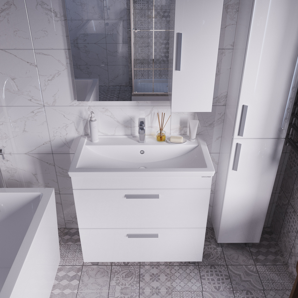 Тумба напольная под раковину с ящиками Grossman Нео 80 см белый 108019