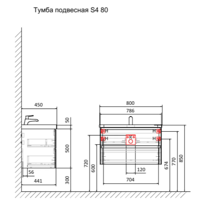 Тумба под раковину AQUAme S4 80 см белый глянец AQM900480WH