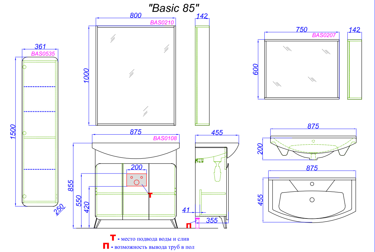 Раковина: Rosa Элеганс 85 керамика/ приобретается отдельно