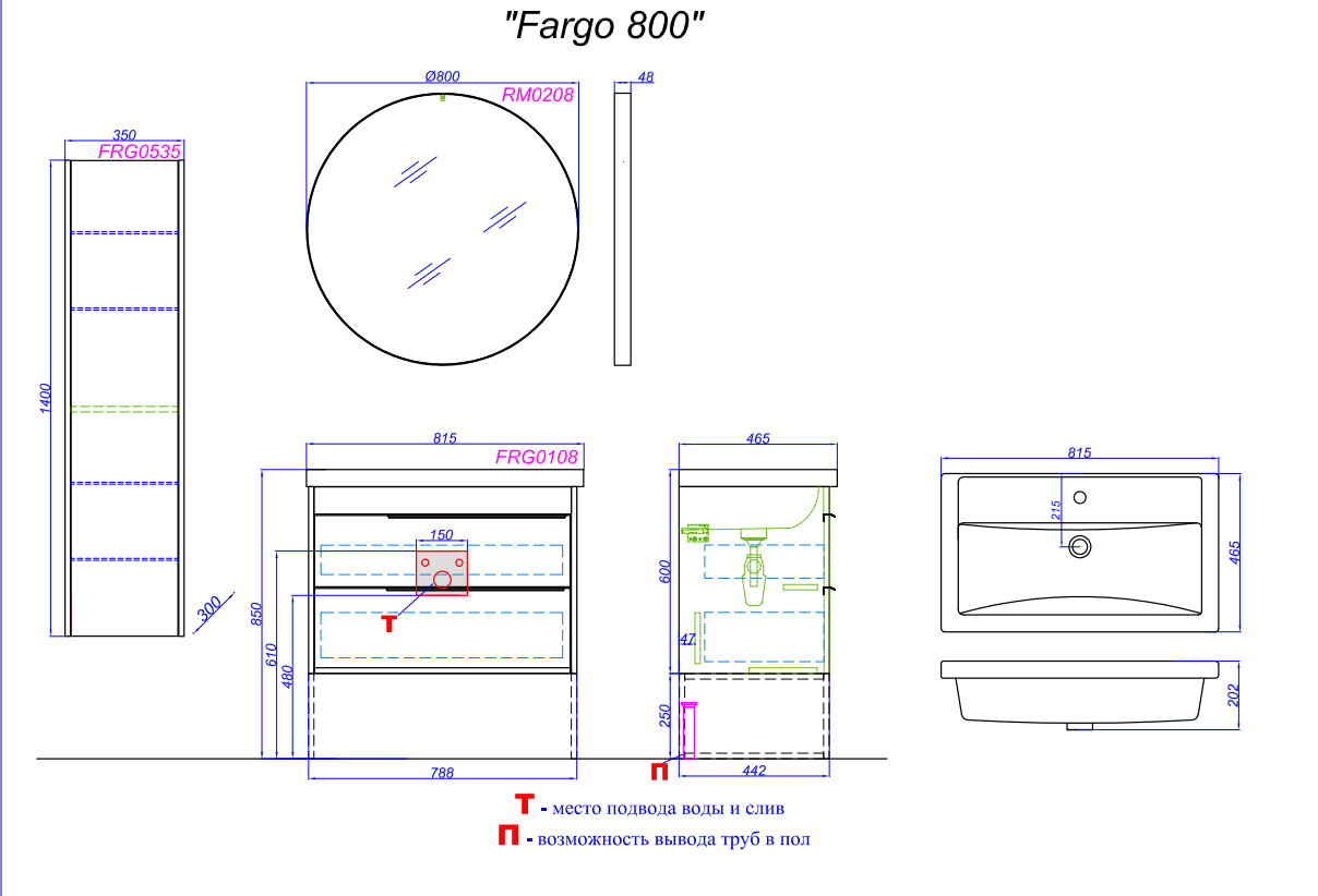Тумба под раковину Aqwella Fargo 80 см подвесная/ напольная FRG0108DB