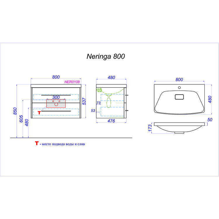 | Раковина | Neringa литьевой мрамор/ приобретается отдельно |