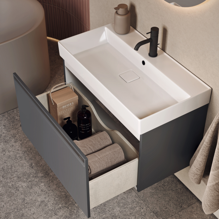 Благодаря минималистичному стилю и сдержанной цветовой гамме, мебель коллекции Pure легко впишется в любой современный интерьер. Для любого метража ванной комнаты можно подобрать подходящий по размеру продукт. В коллекции Pure на выбор есть три размера тумбы и пенал для дополнительного хранения. Окунитесь в атмосферу расслабления и комфорта с новой коллекцией Pure